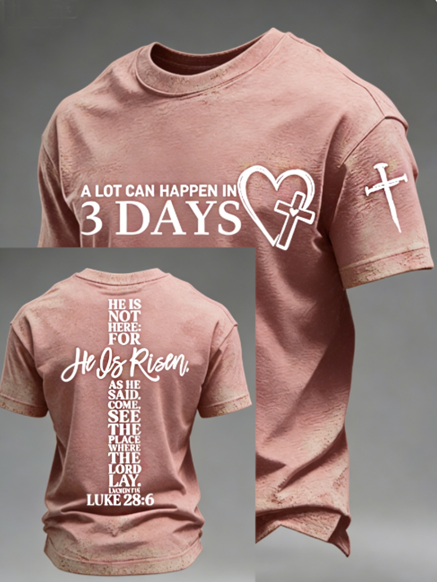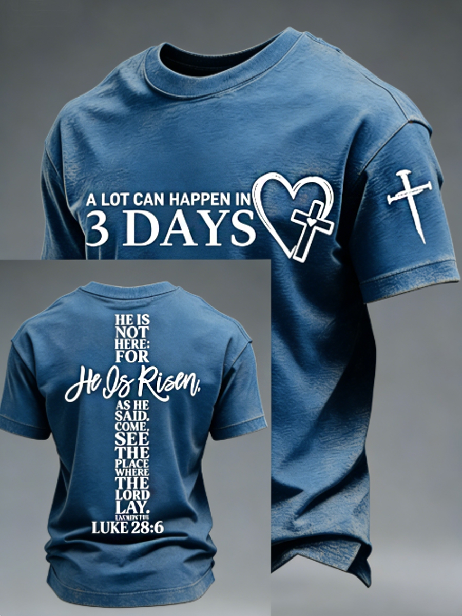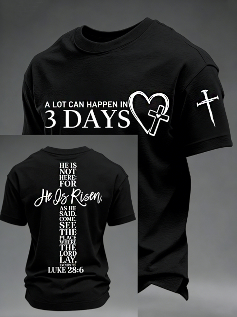 Men's A Lot Can Happen in 3 Days Embroidery Pattern Tee