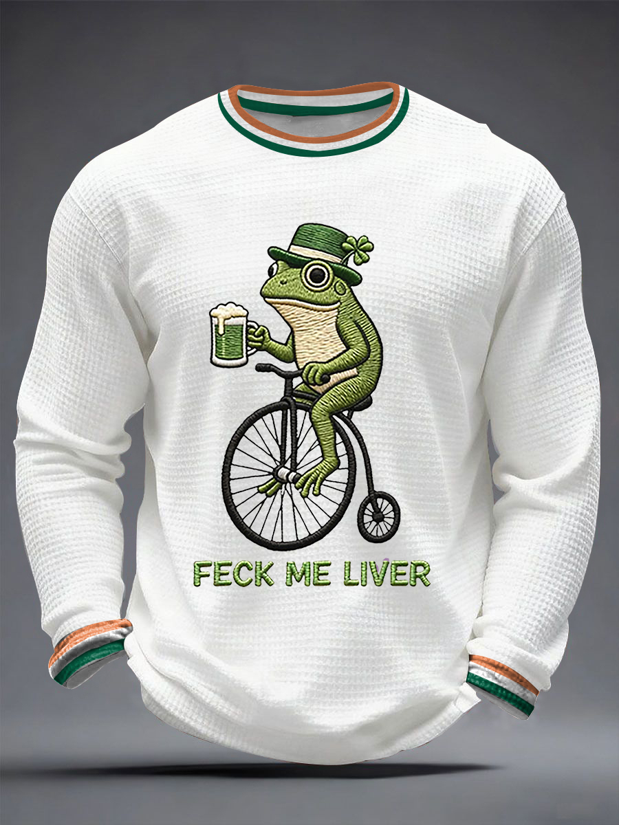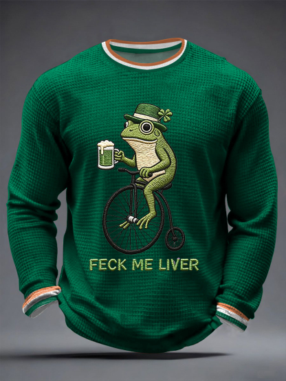 Men's Funny St Patrick’s Day Irish Frog Feck Me Liver Waffle Long Sleeve T-Shirt