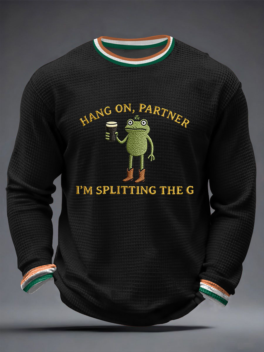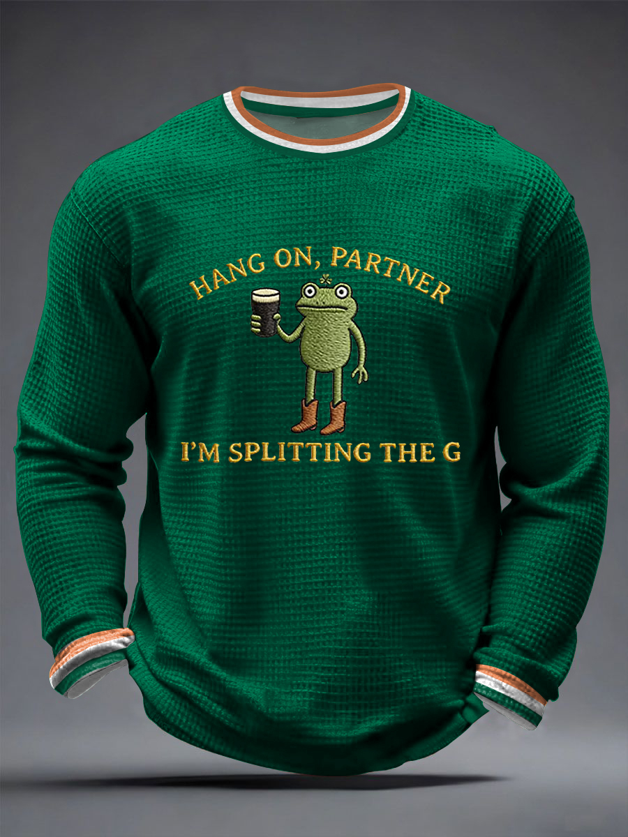 Men's Funny St Patrick’s Day Irish Frog Split the G Waffle Long Sleeve T-Shirt