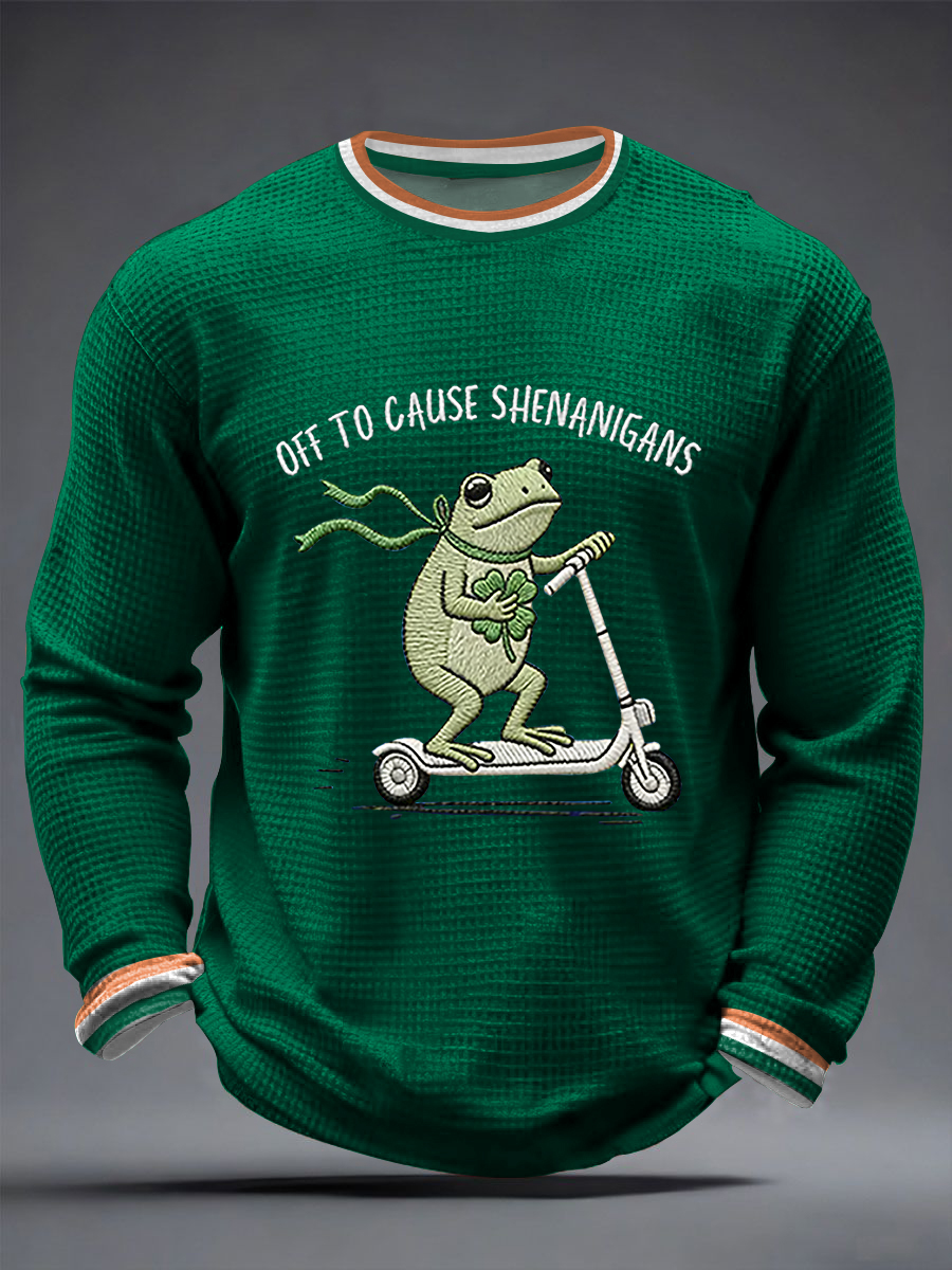 Men's Funny St Patrick’s Day Irish Frog Waffle Long Sleeve T-Shirt