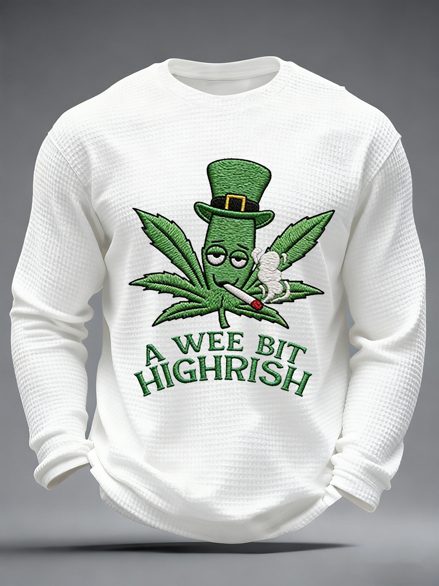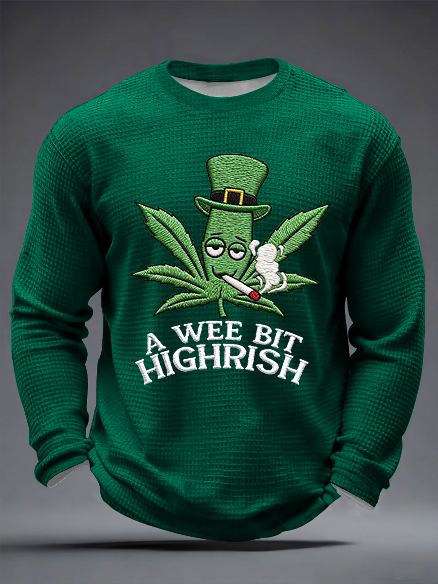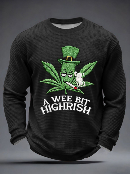 Men's Funny St Patrick Day A Wee Bit Highrish Waffle Long Sleeve T-Shirt