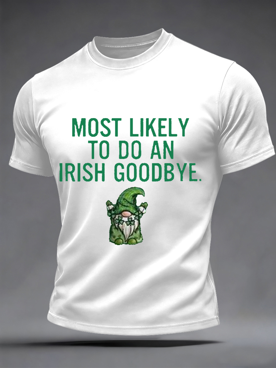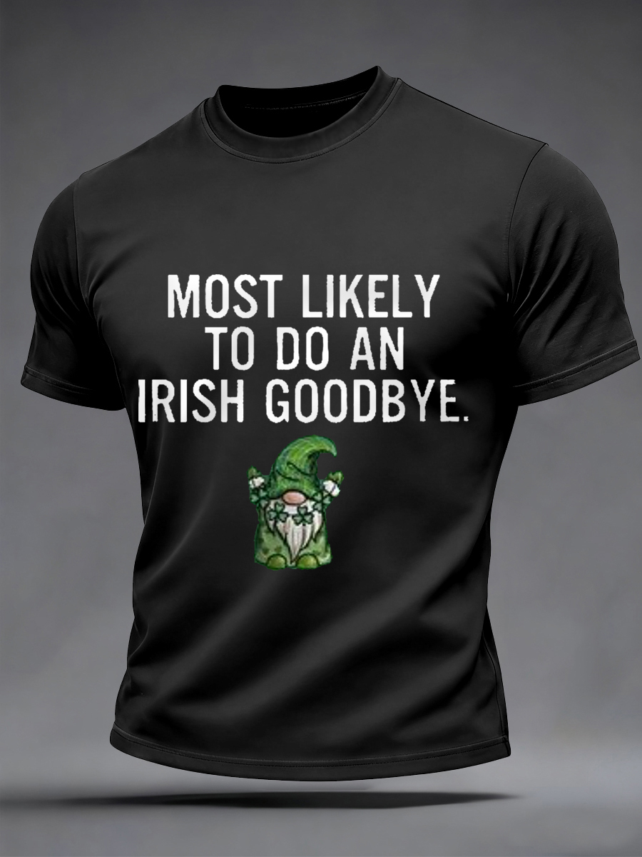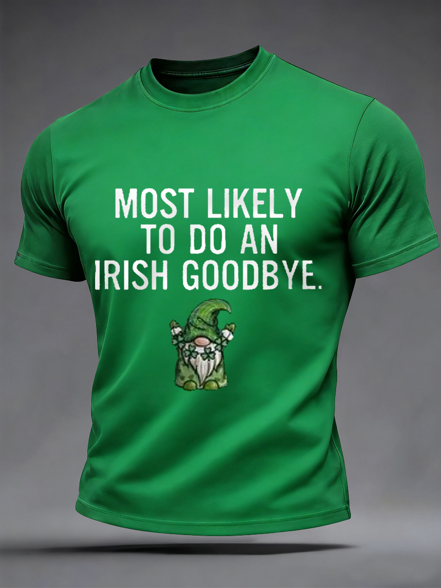 Men's Funny St. Patrick's Day Most Likely To Do An Irish Goodbye Print Casual Tee
