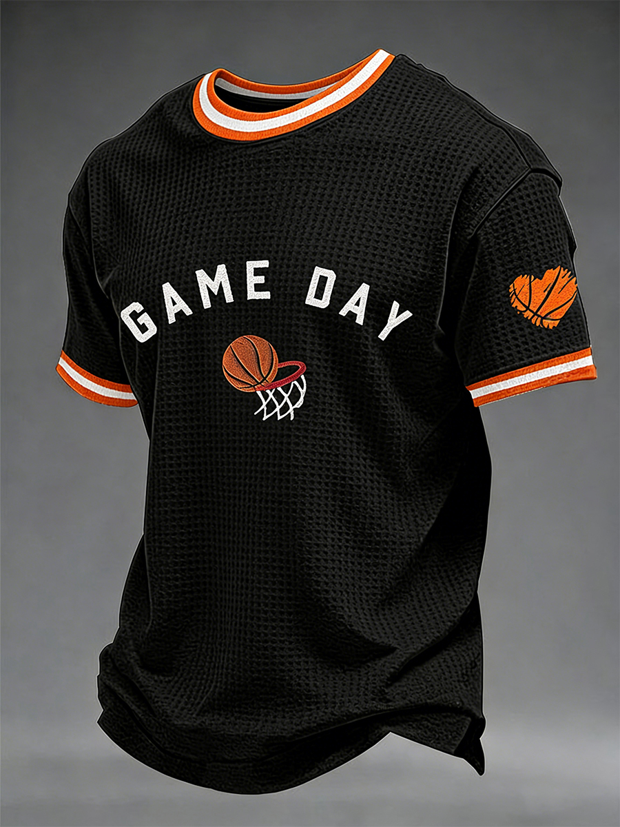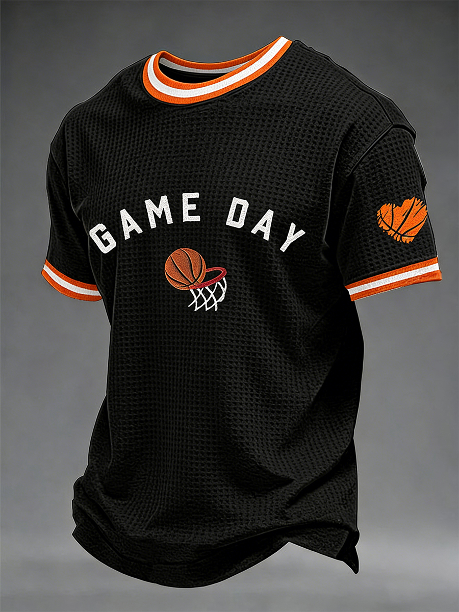 Men's Game Day Print March Madness Basketball Lovers Casual Waffle Short Sleeve T-shirt