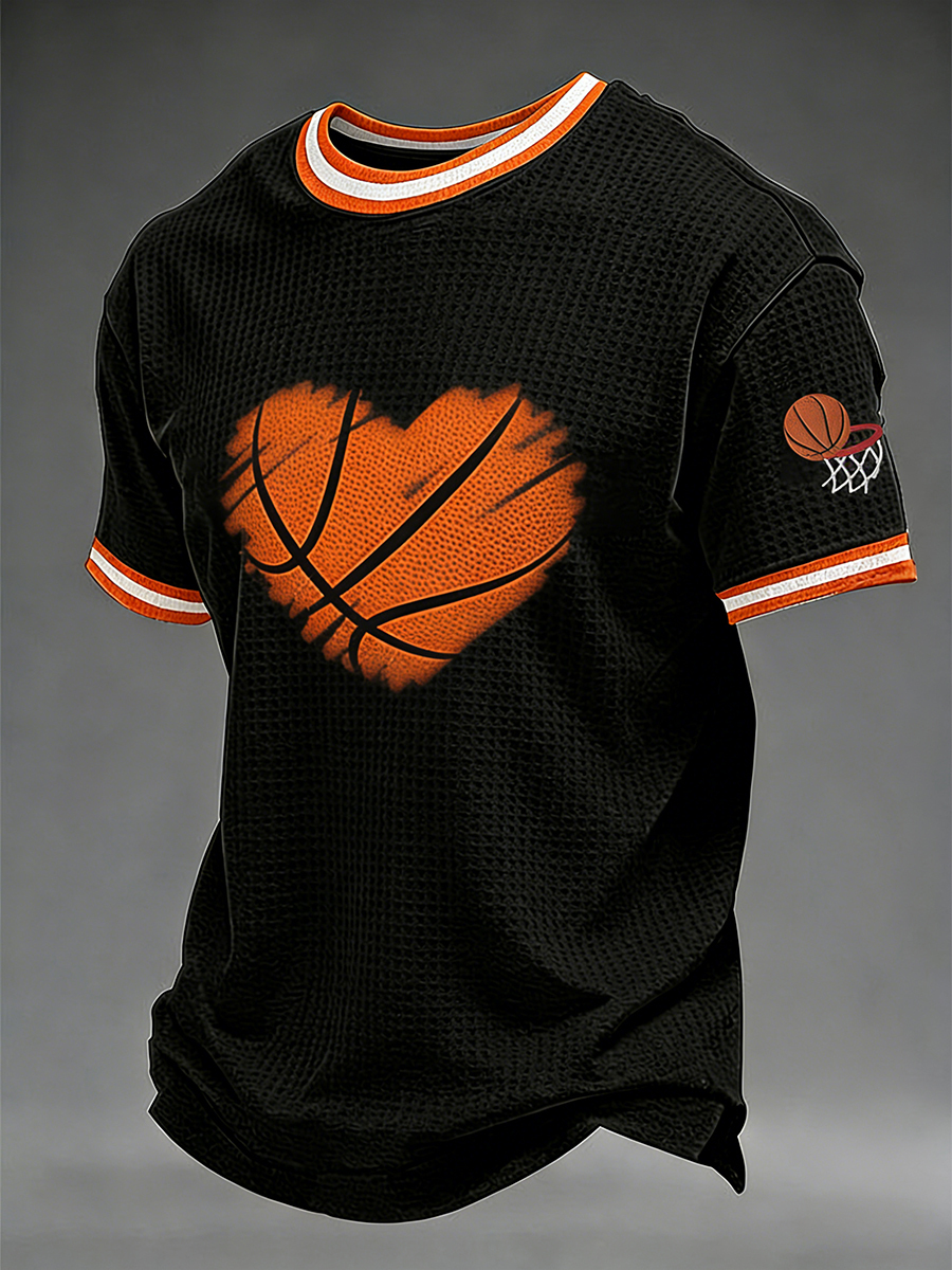 Men's Game Day Print March Madness Basketball Lovers Casual Waffle Short Sleeve T-shirt