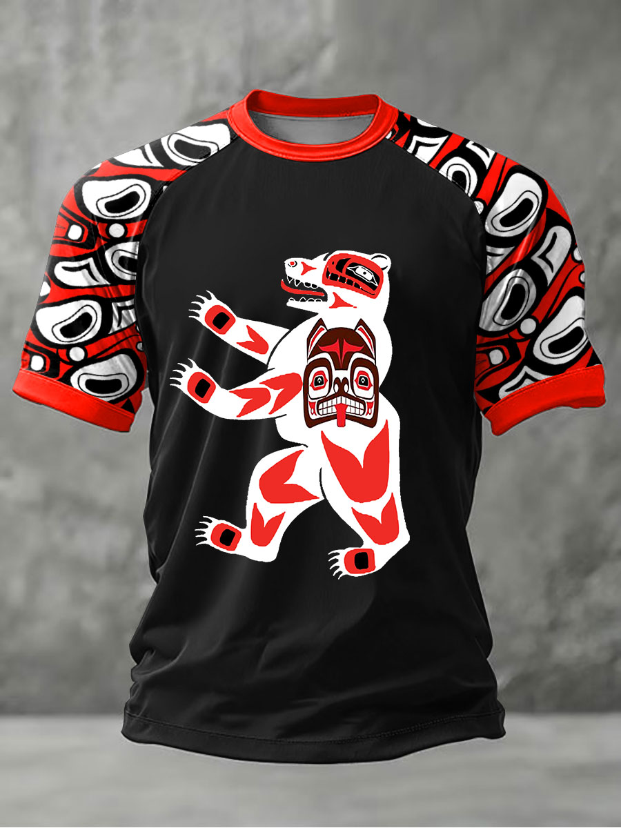 Men's Indigenous Bear Art Casual T-shirt