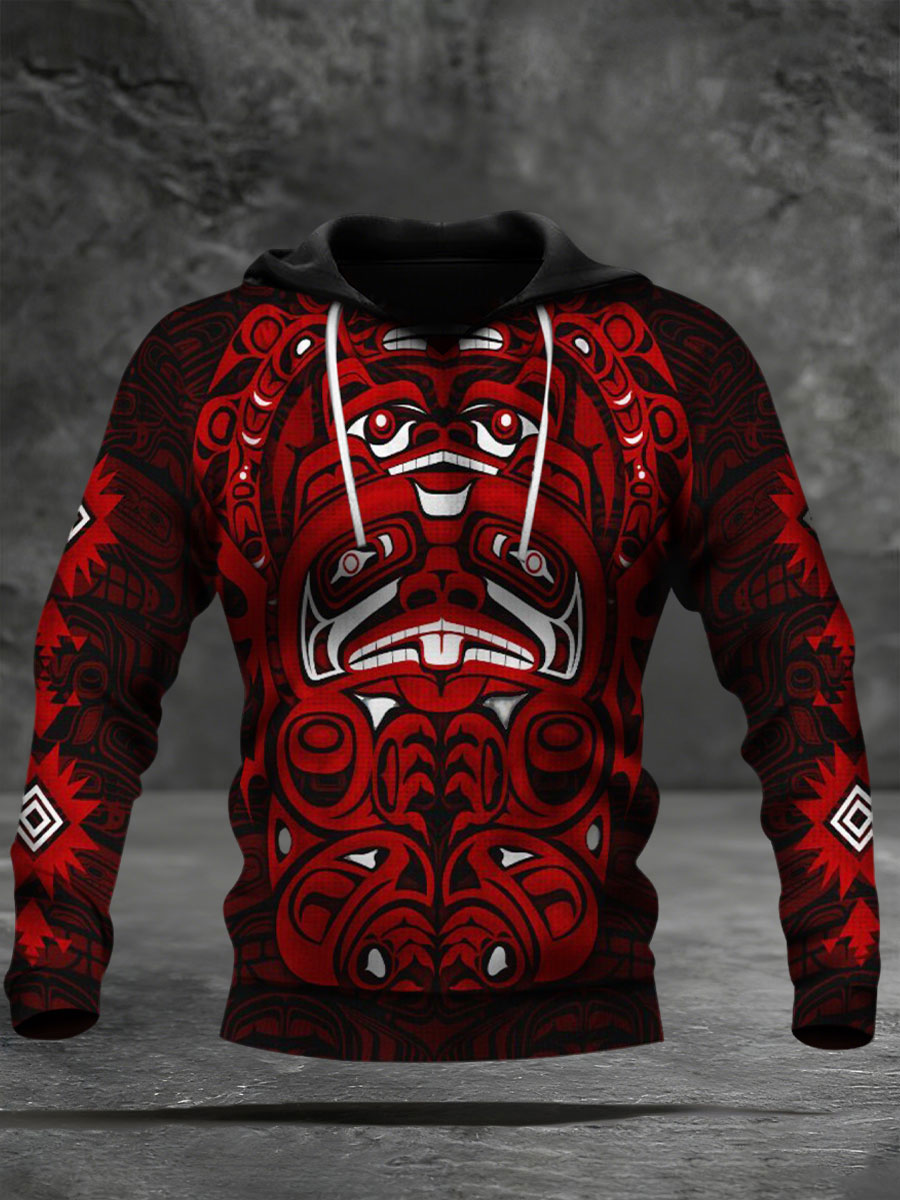 Men's Indigenous Print Casual Hoodie