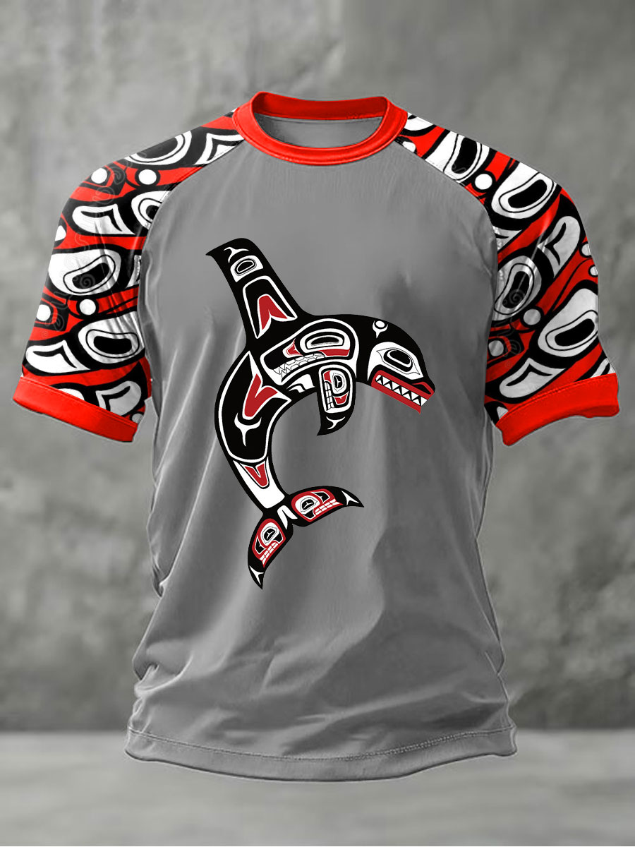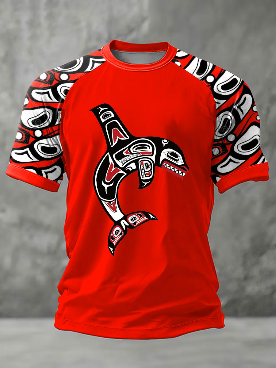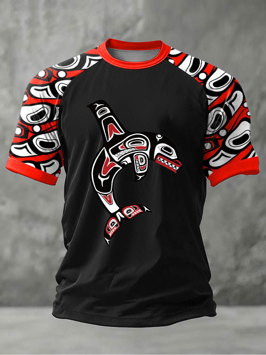 Men's Indigenous Totem Art Print Casual T-Shirt