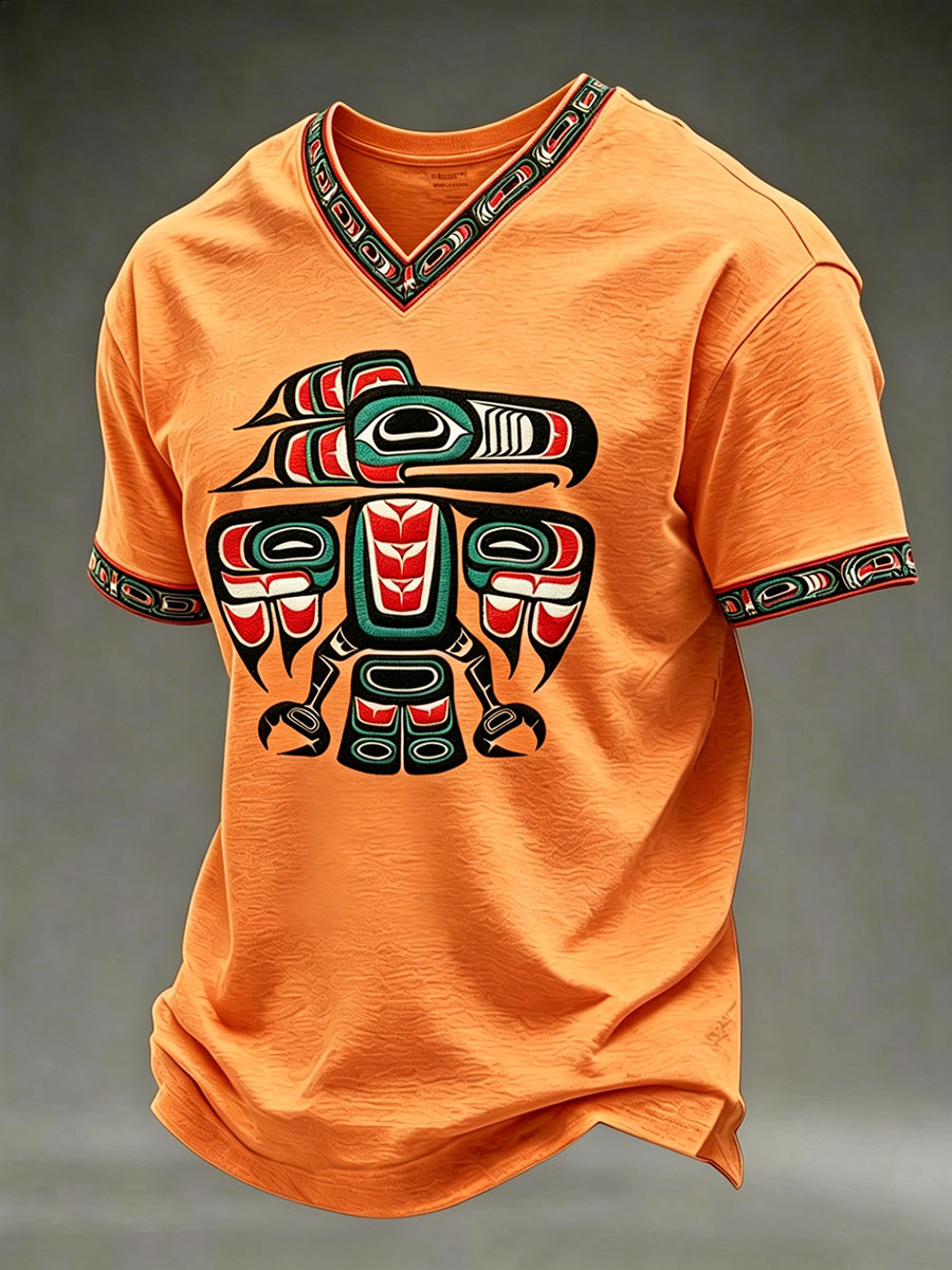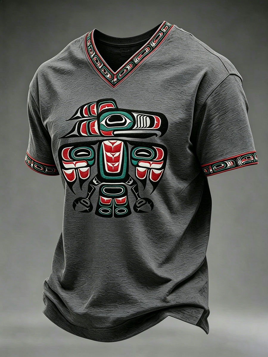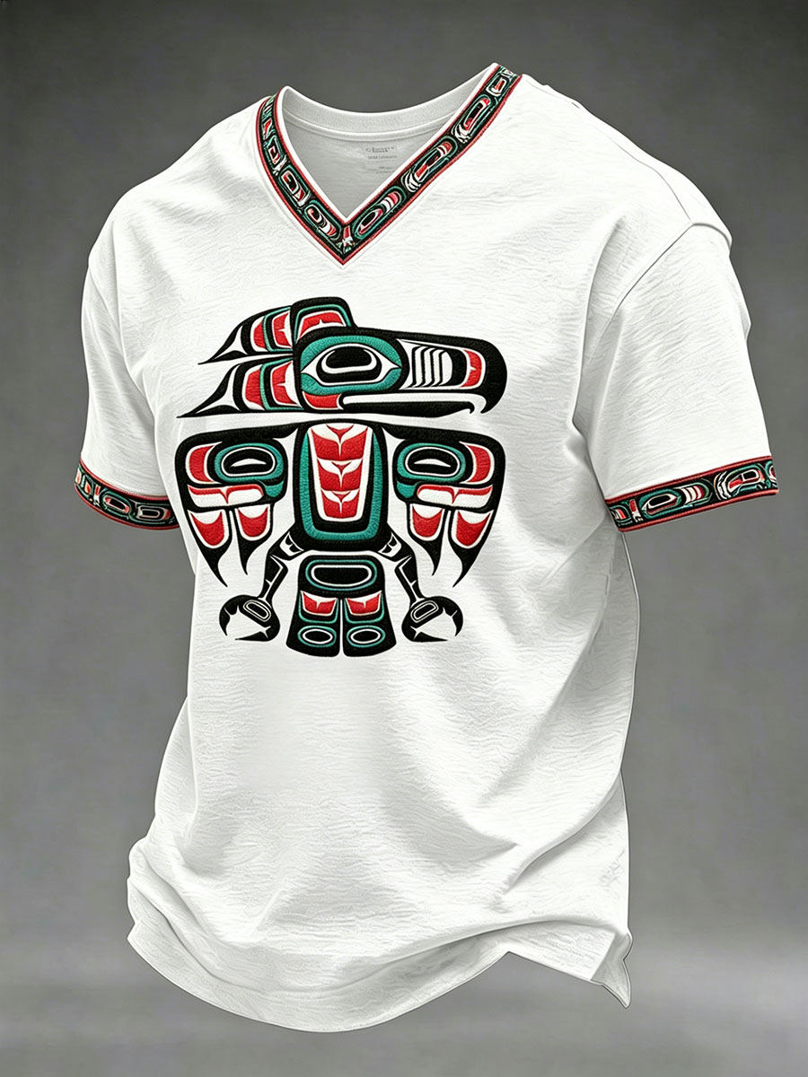 Men's Indigenous Totem Art Print Casual T-shirt