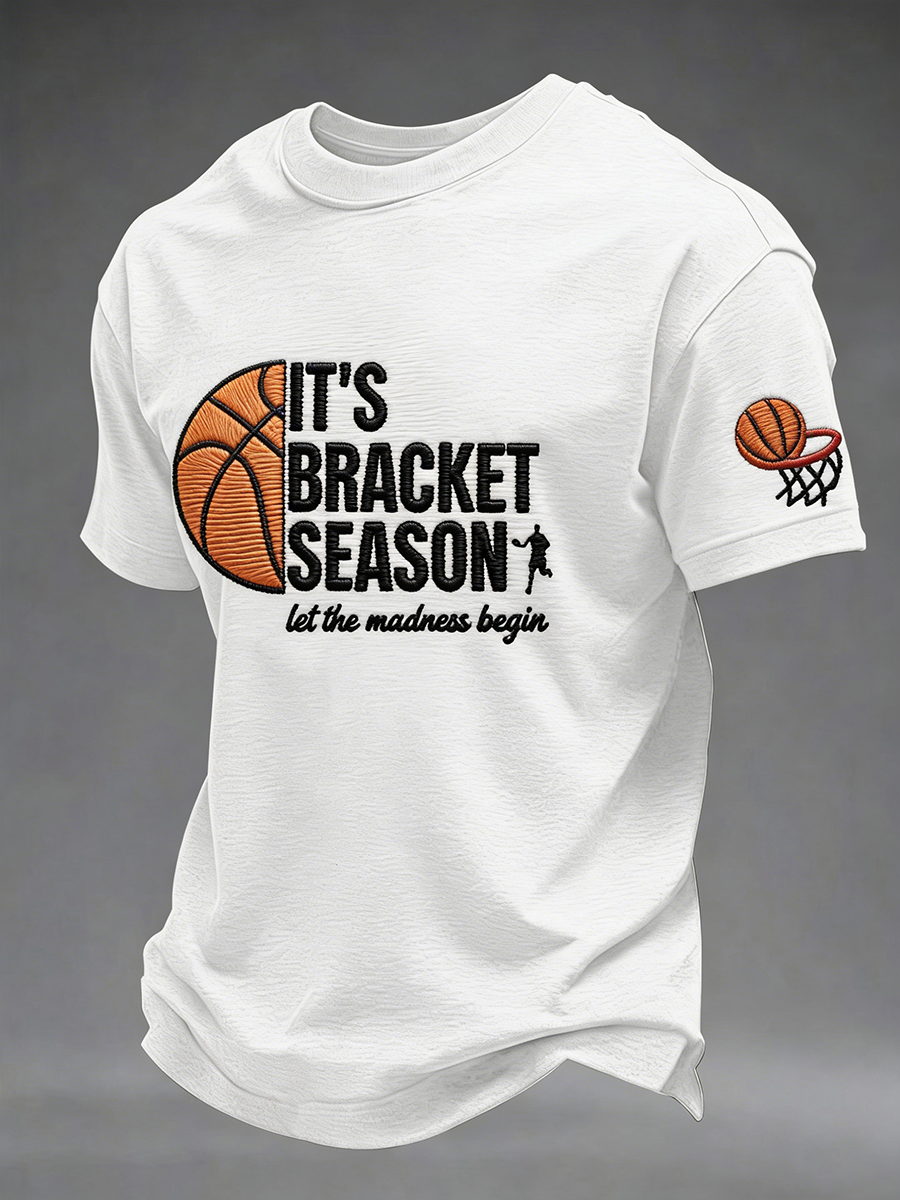Men's Let The Madness Begin Print March Madness Basketball Lovers Casual T-shirt