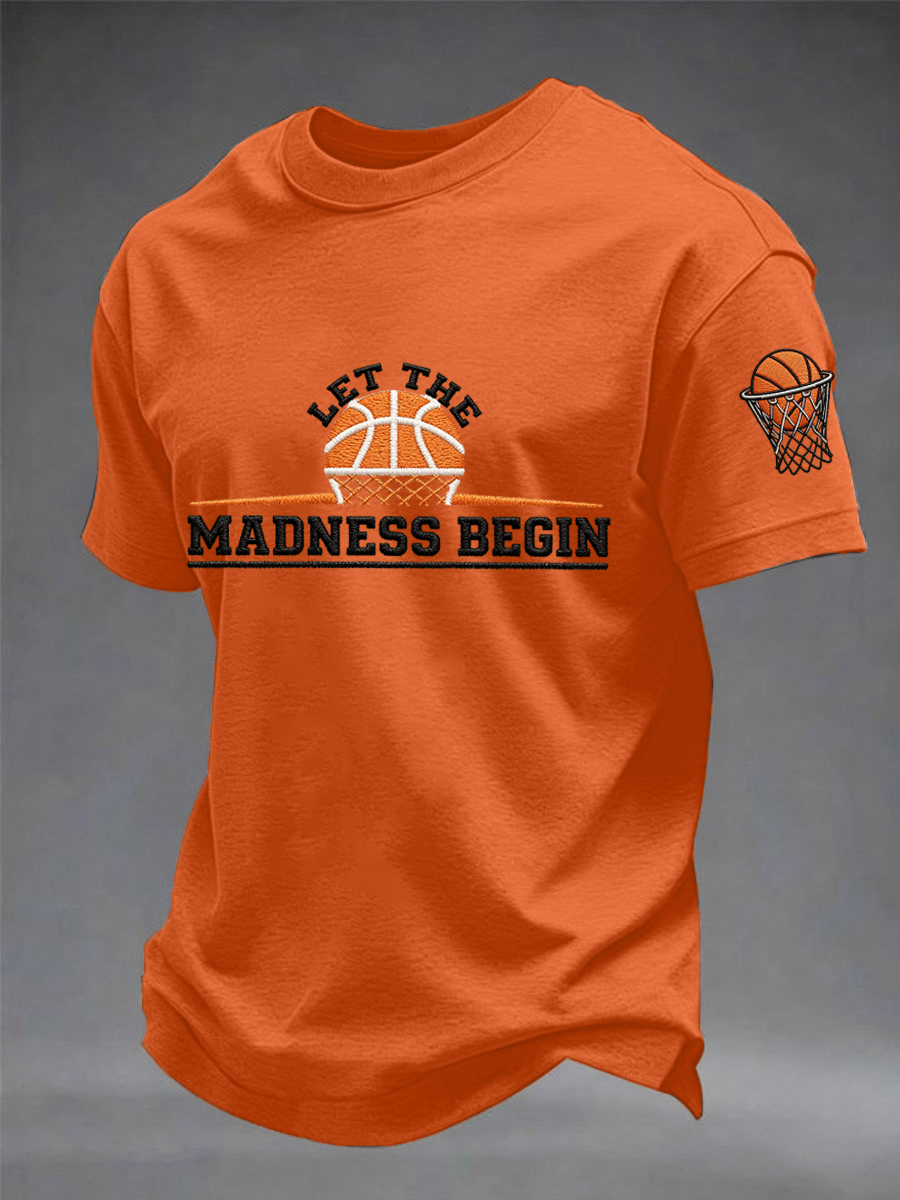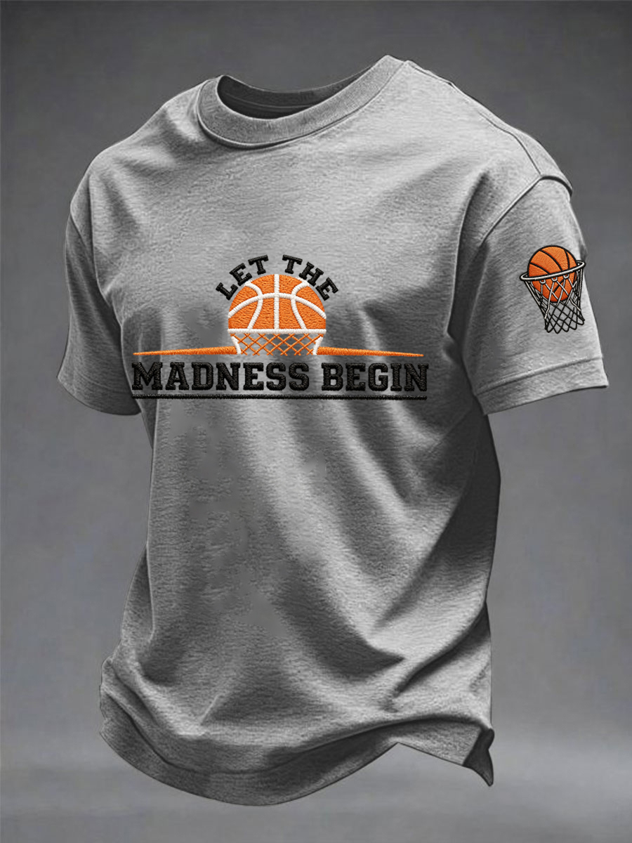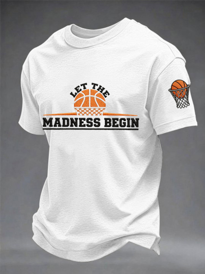 Men's Let The Madness Begin Print March Madness Basketball Lovers Casual Tee