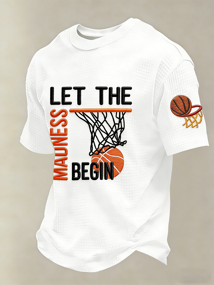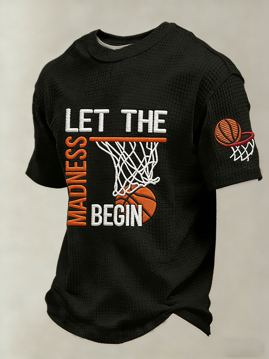 Men's Let The Madness Begin Print March Madness Basketball Lovers Casual Waffle Short Sleeve T-Shirt