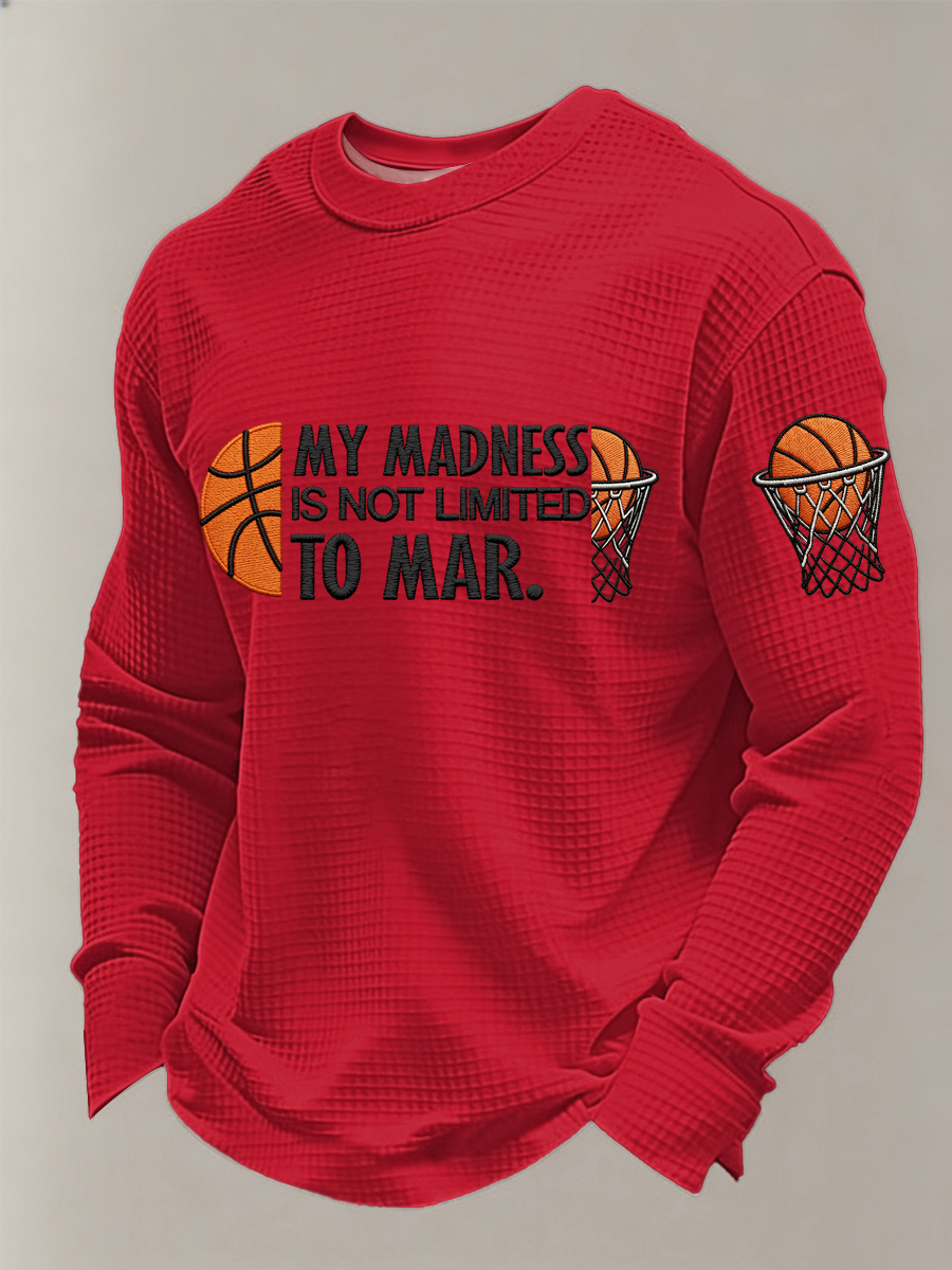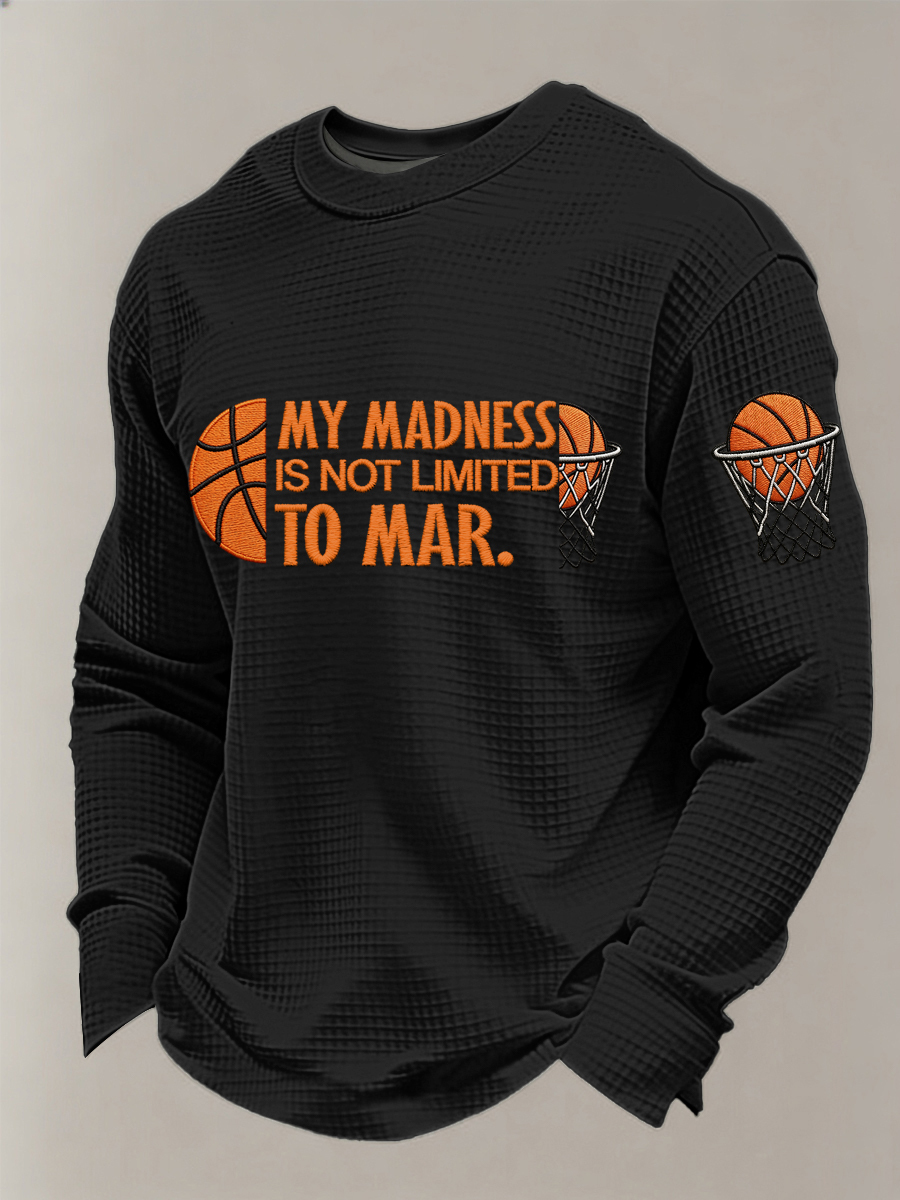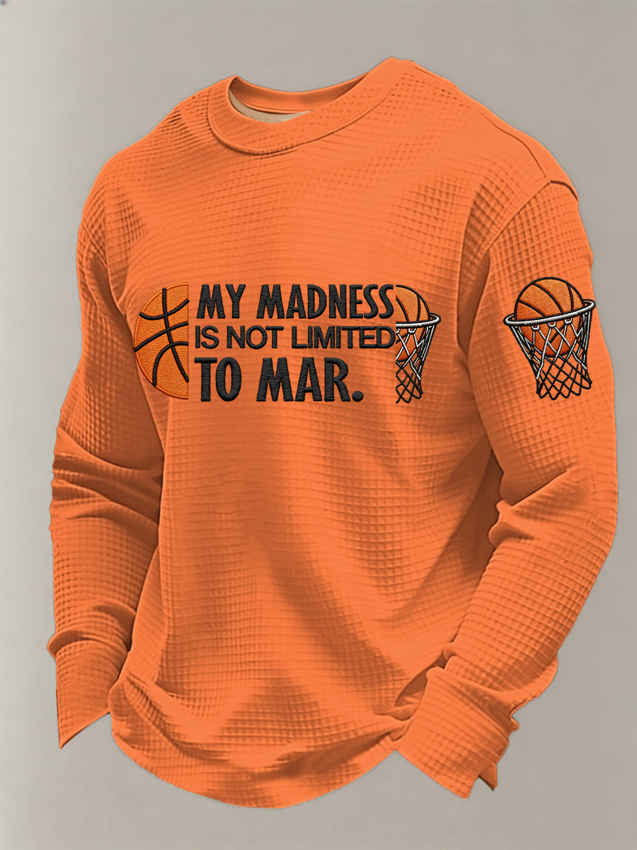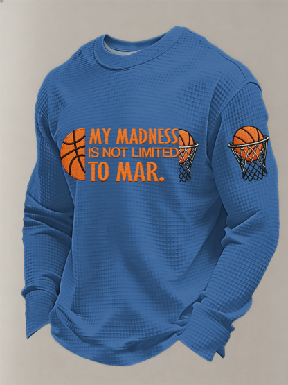 Men's My Madness Is Not Limited To March Print March Madness Basketball Lovers Casual Waffle Long Sleeve T-Shirt