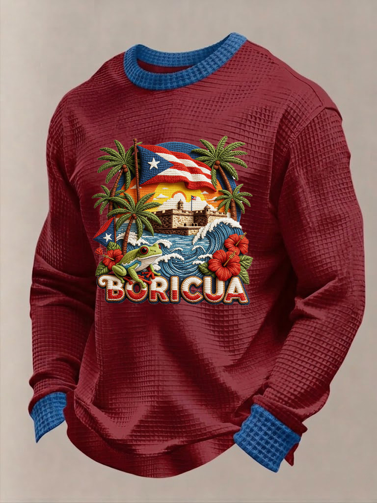 Men's Puerto Rico Printed Waffle Long Sleeve Sweatshirt