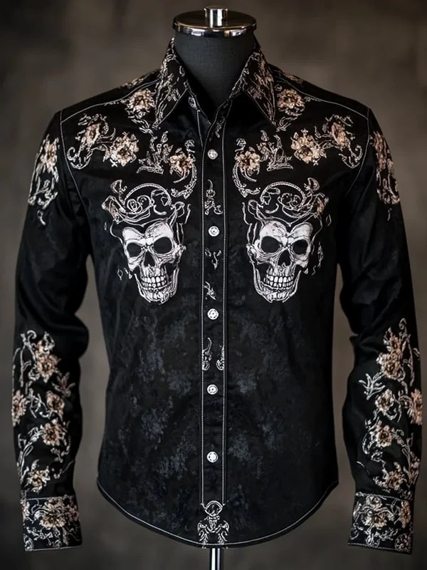 Men's Retro Casual Skull Print Long Sleeve Shirt