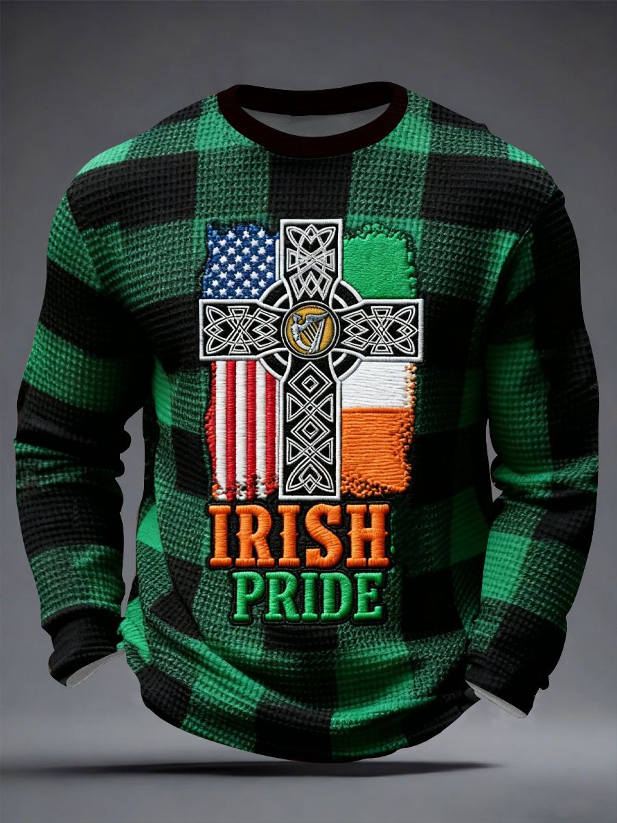 Men's Retro Irish Celtic Cross Pattern Waffle Long Sleeve T-Shirt
