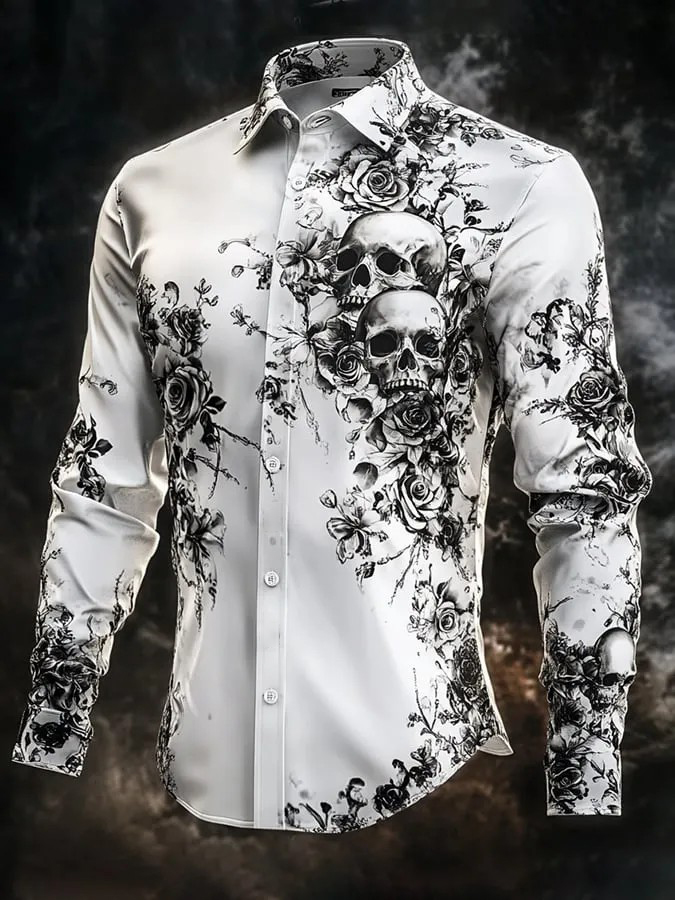 Men's Retro Valentines Day Skull Long-Sleeved Shirt