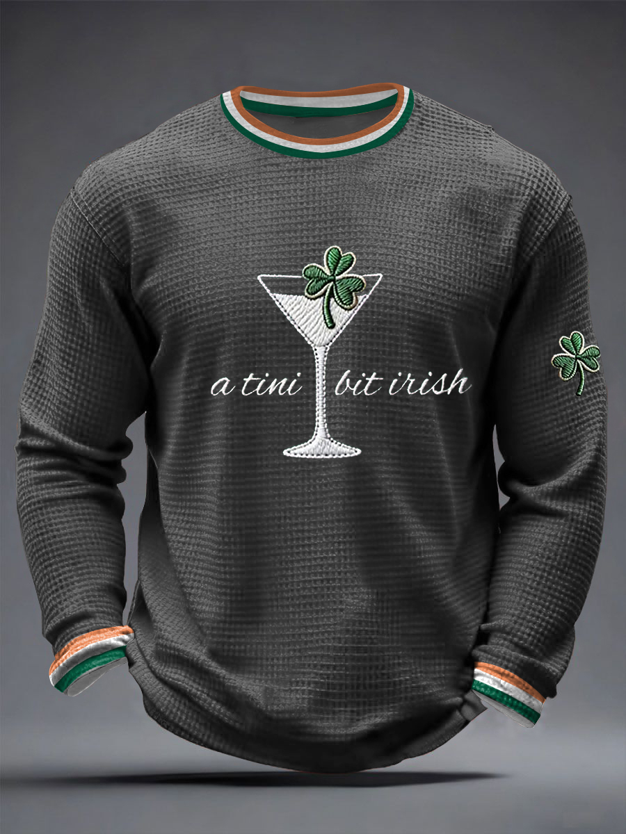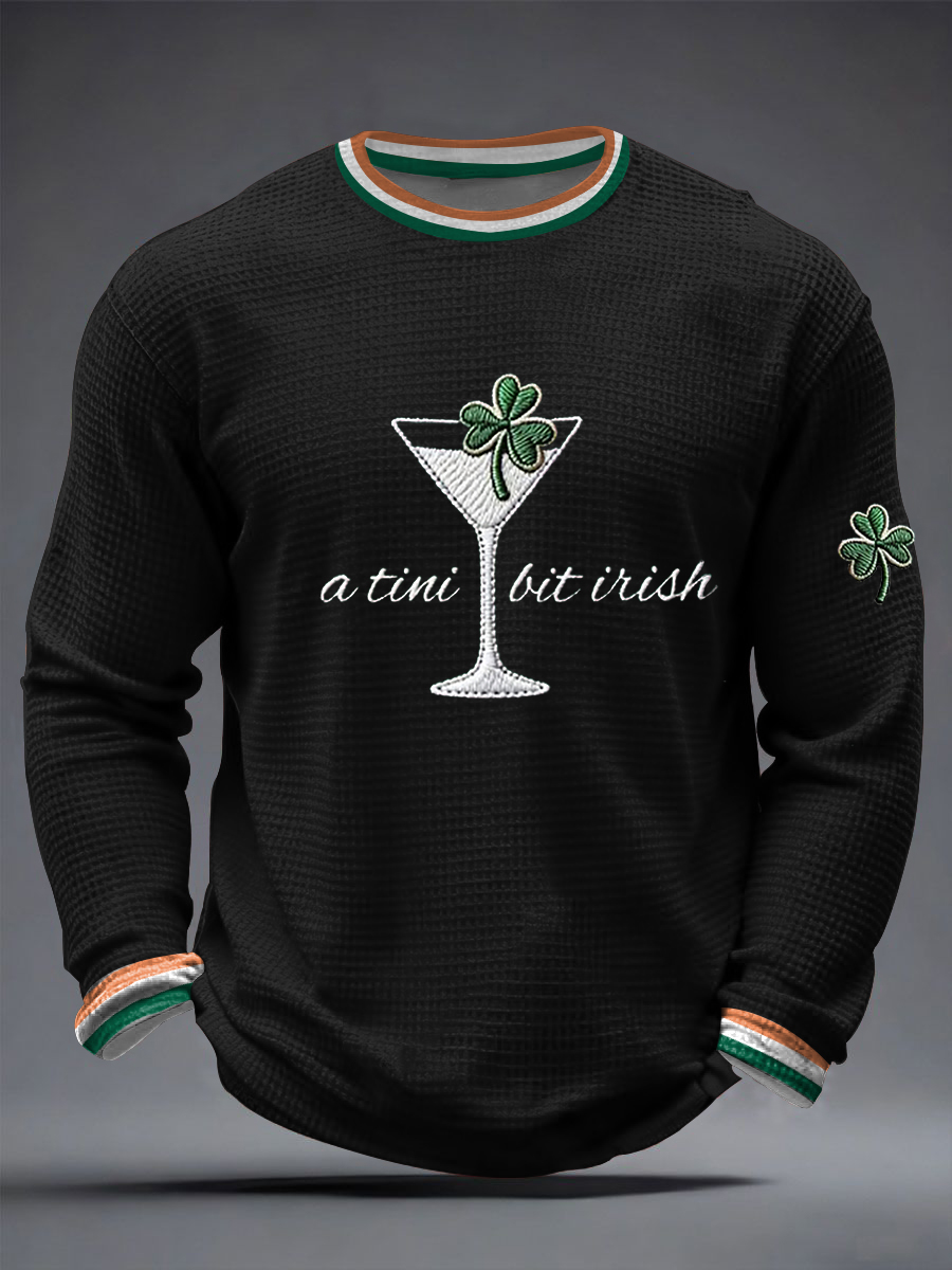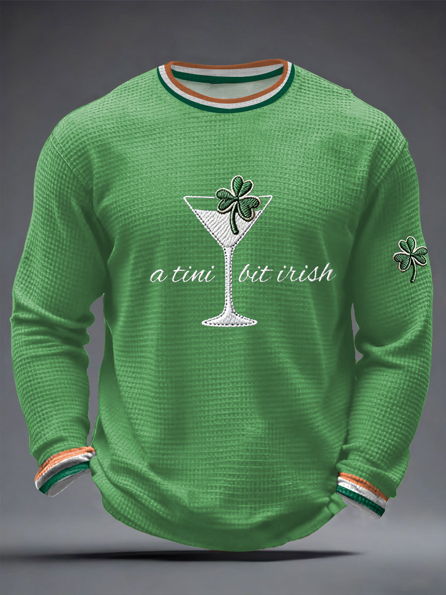 Men's St. Patrick's Day A Tini Bit Irish Shamrock Art Waffle Long Sleeve T-Shirt