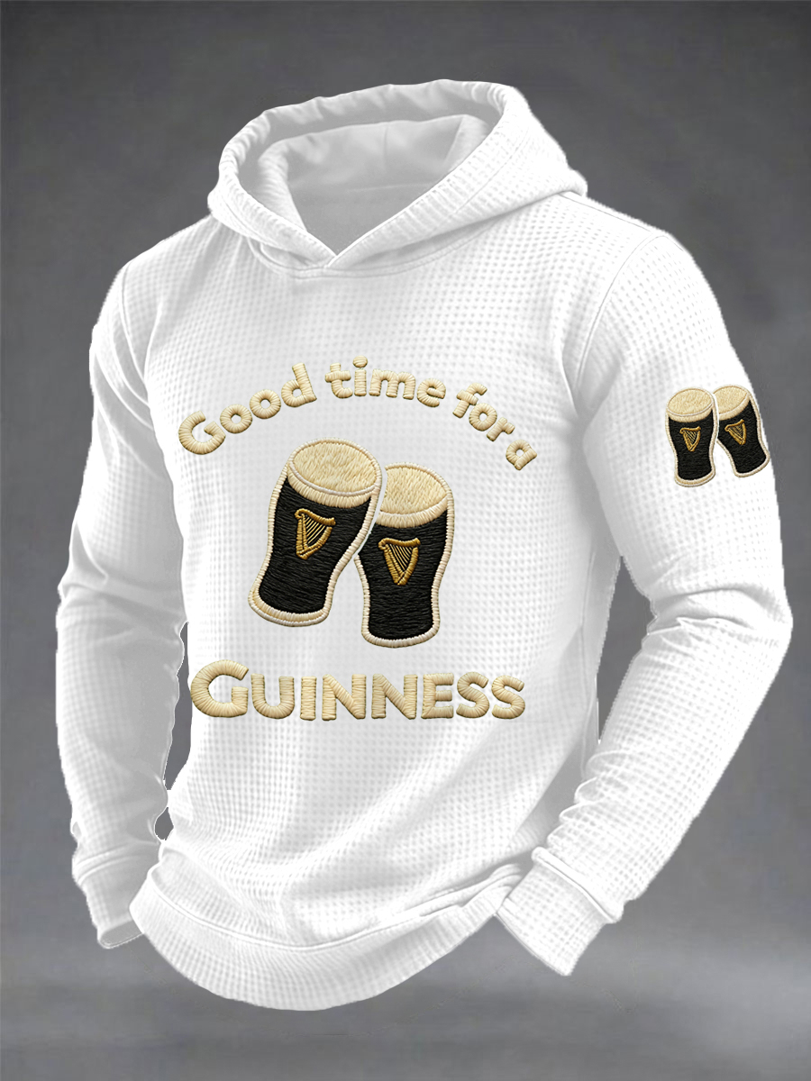 Men's St. Patrick's Day Good Time For A Guinness Print Casual Waffle Hoodie