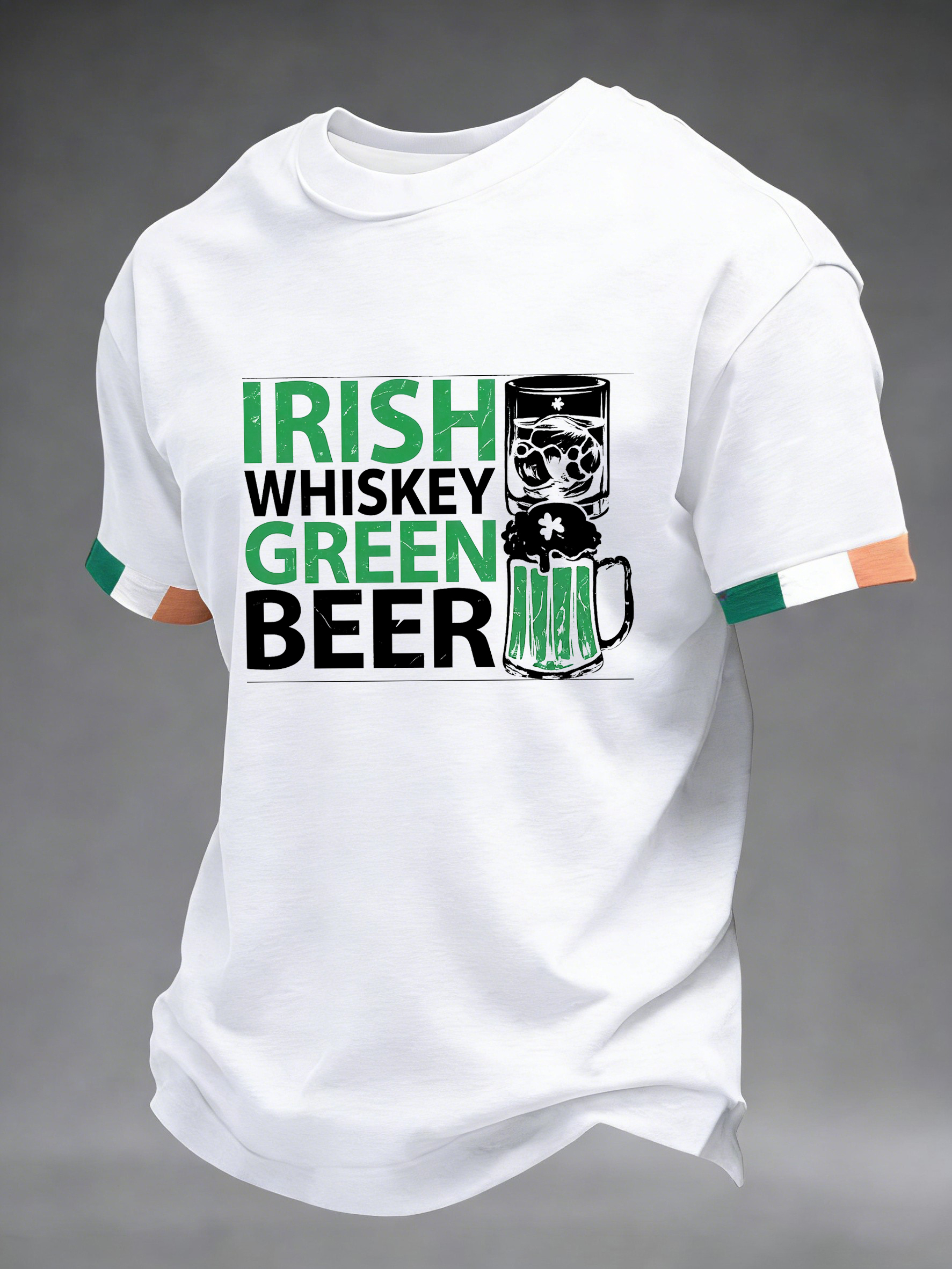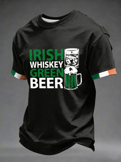 Men's St. Patrick's Day Irish Whiskey Green Beer Printed T-shirt