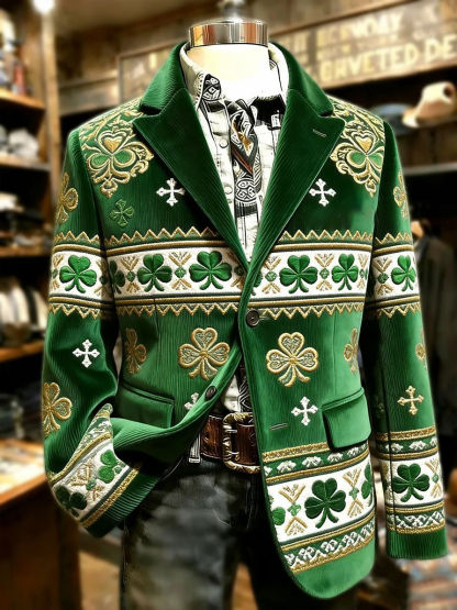 Men's St. Patrick's Day Print Casual Lapel Suit