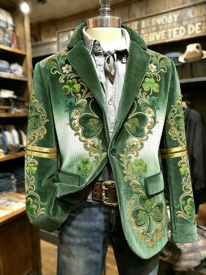 Men's St. Patrick's Day Print Casual Lapel Suit