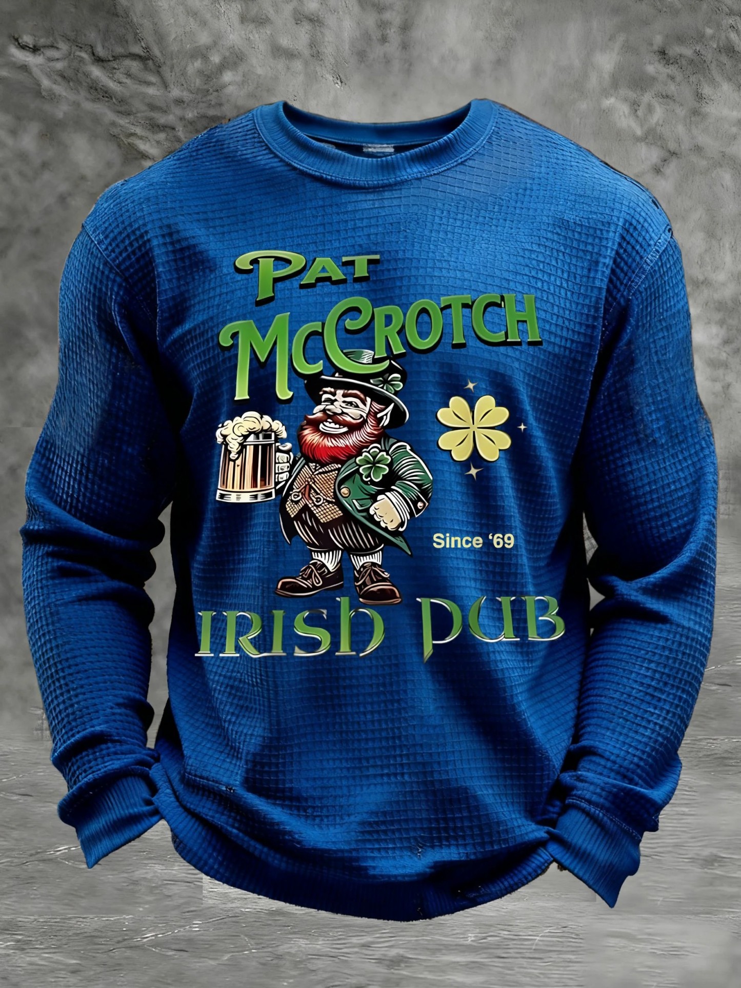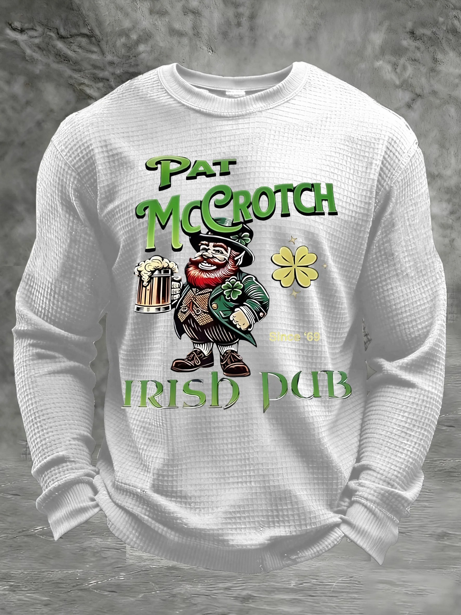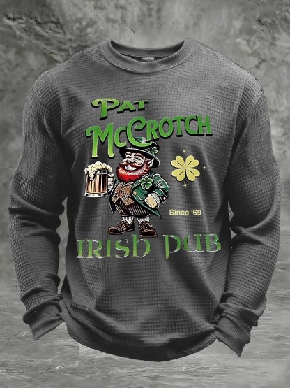 Men's St. Patrick's Day Printed Waffle Long Sleeve Sweatshirt