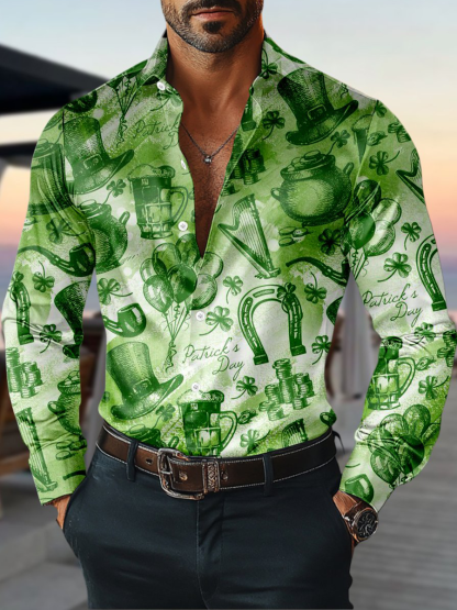 Men's St. Patrick's Day Shamrock Print Long-sleeve Shirt