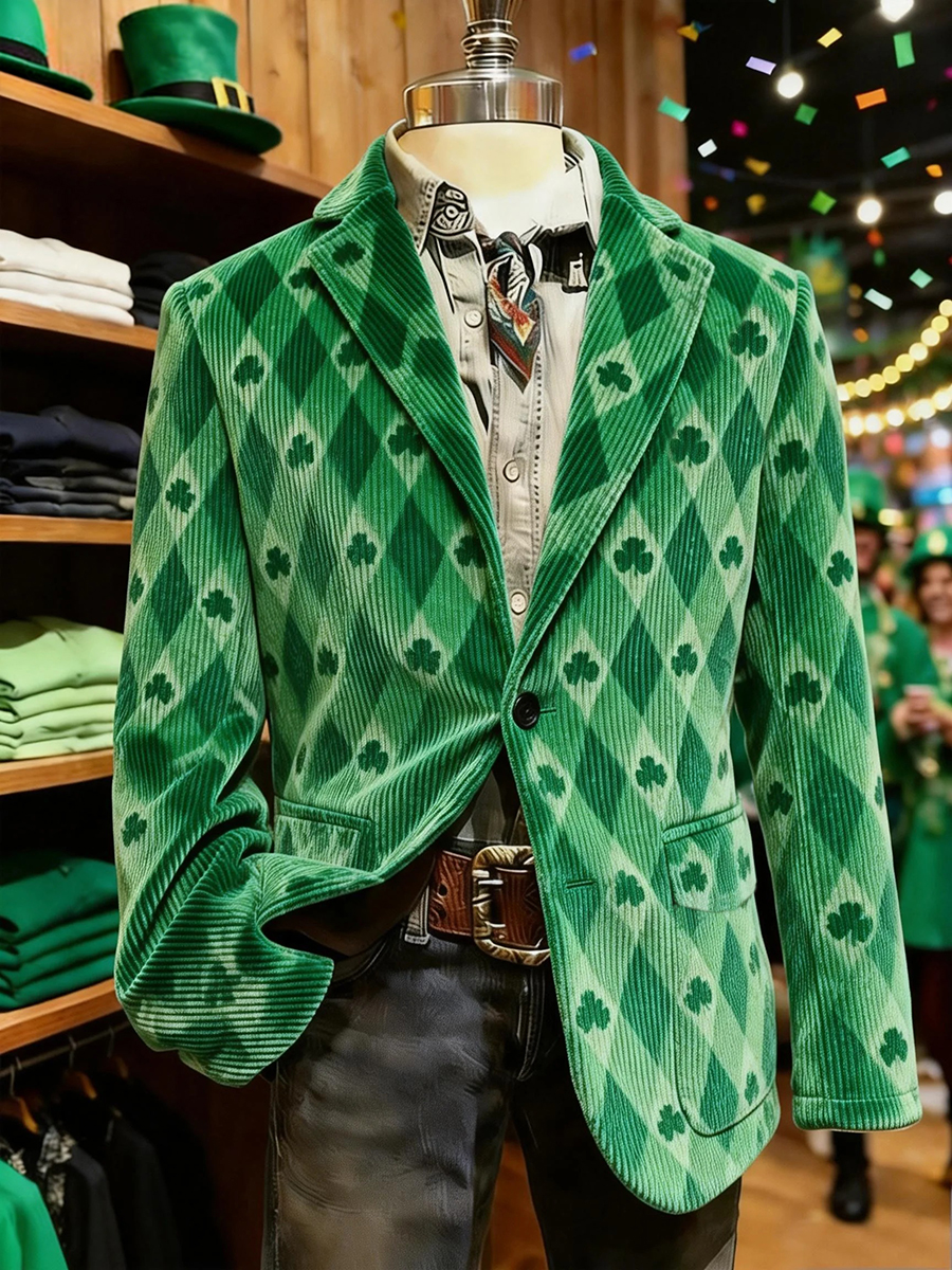 Men's St. Patrick's Day Shamrocks Print Casual Suit