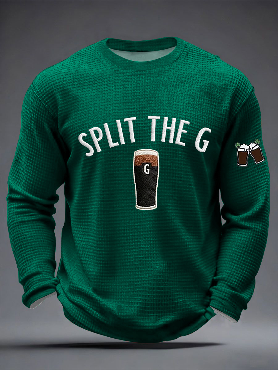 Men's St. Patrick's Day Split the G Printed Waffle Long Sleeve T-Shirt