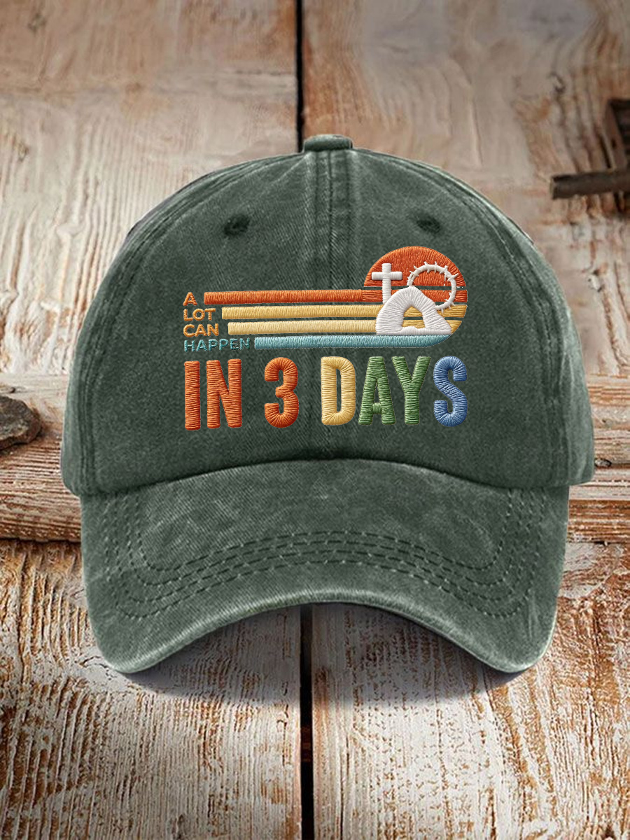 Unisex A Lot Can Happen in 3 Days Embroidery Pattern Hat