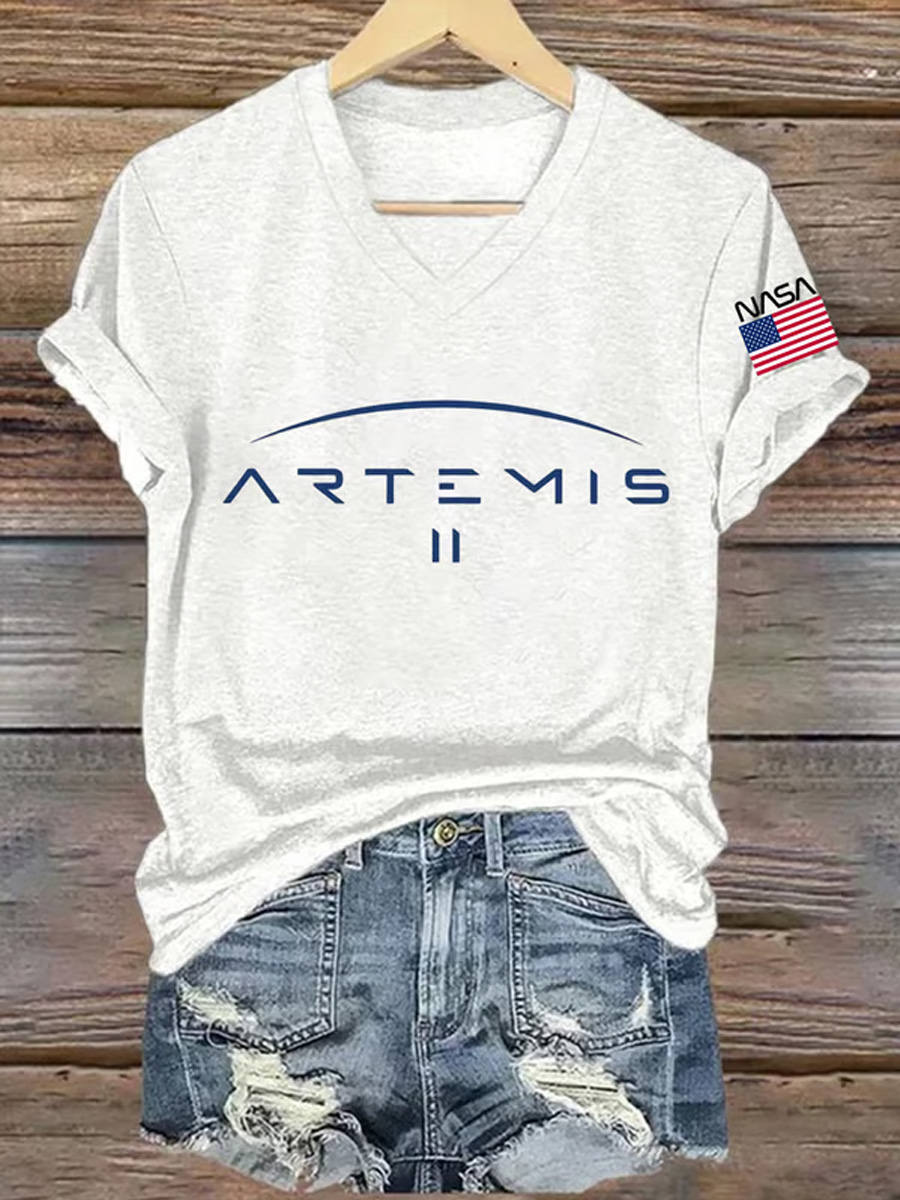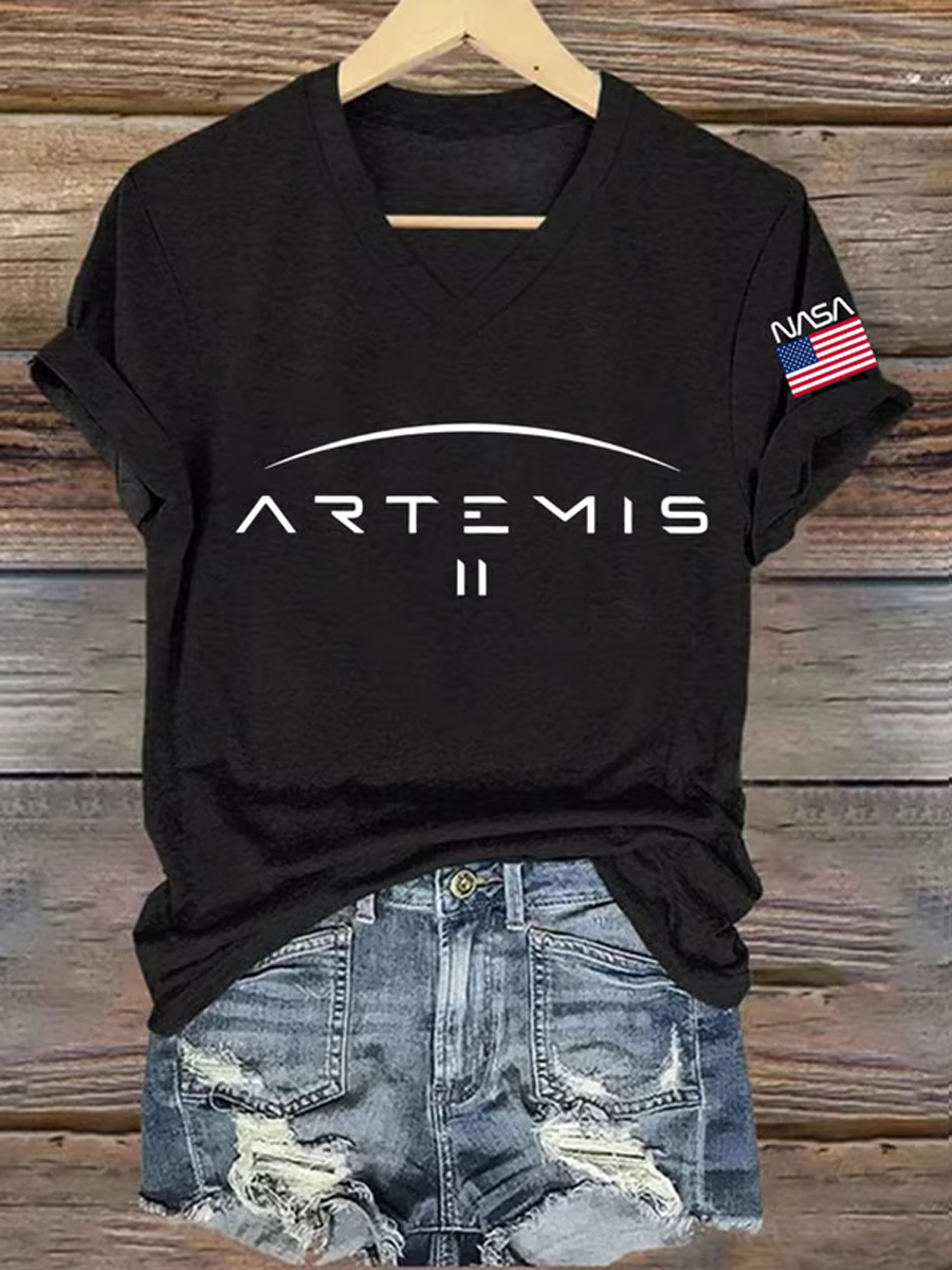 Women's Artemis II 2026 Print Casual V-Neck Tee