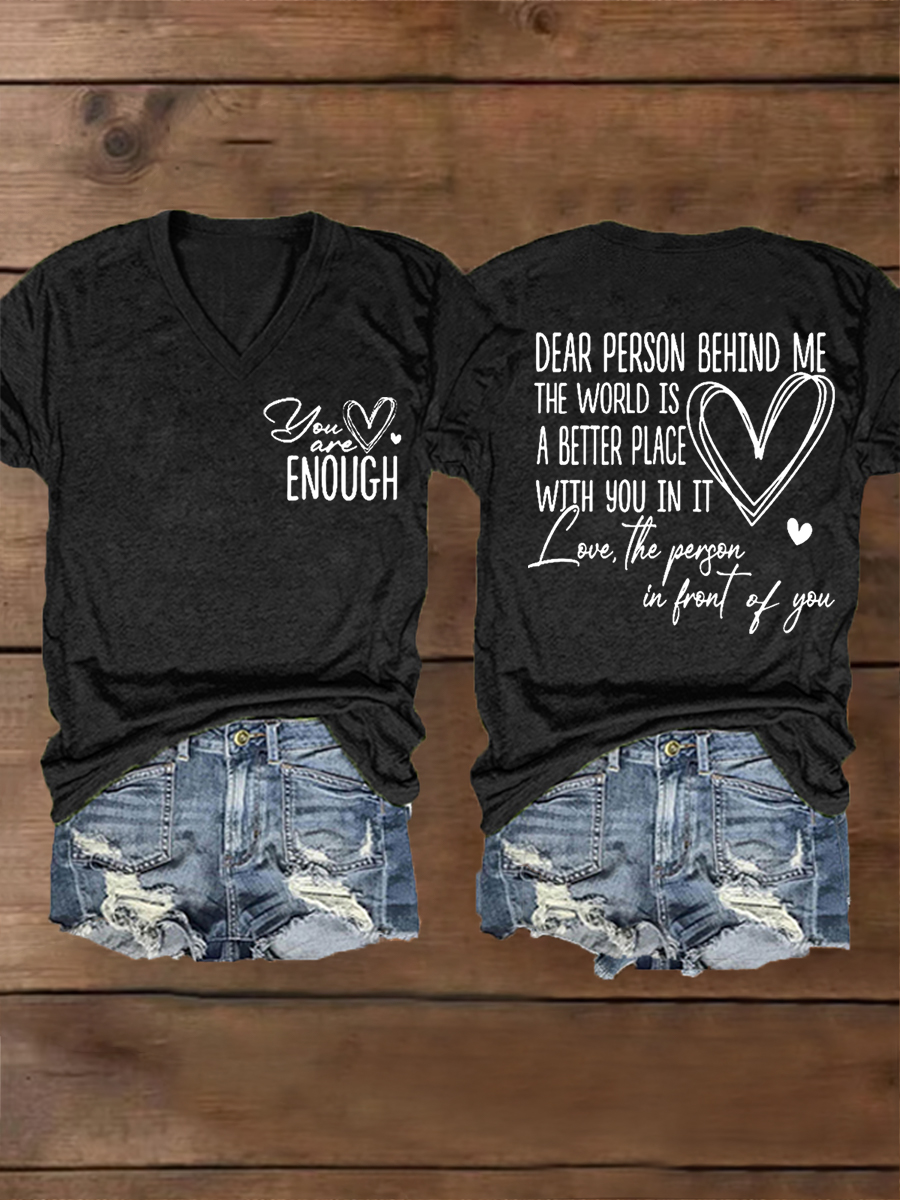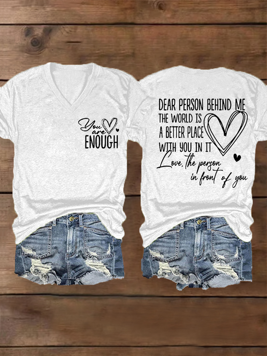 Women's Dear Person Behind Me, You Are Amazing Beautiful Enough Mental Health Matters V-Neck Tee