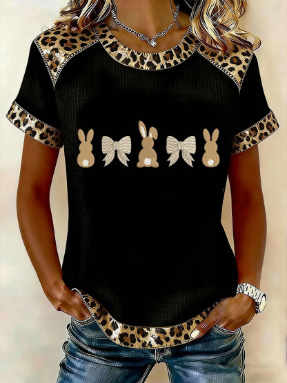 Women's Easter Bunny Print Casual Short Sleeved T-Shirt