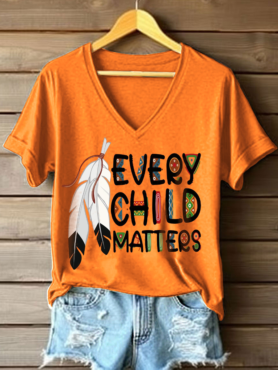 Women's Every Child Matters Feather Print V-Neck T-Shirt