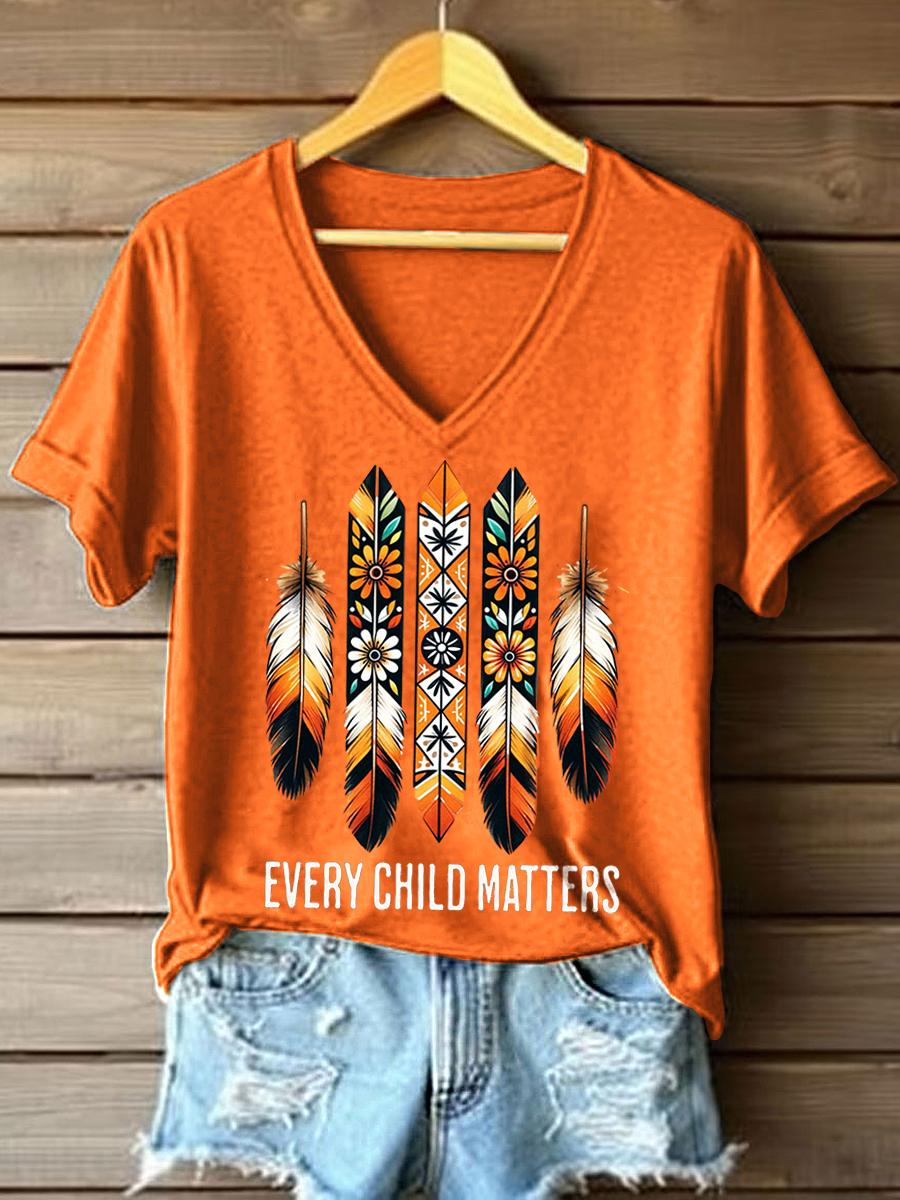 Women's Every Child Matters Feather Print V-Neck T-Shirt