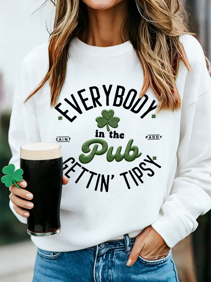 Women's Funny St. Patrick's Day Everybody In The Pub Gettin Tipsy Shamrock Print Casual Sweatshirt