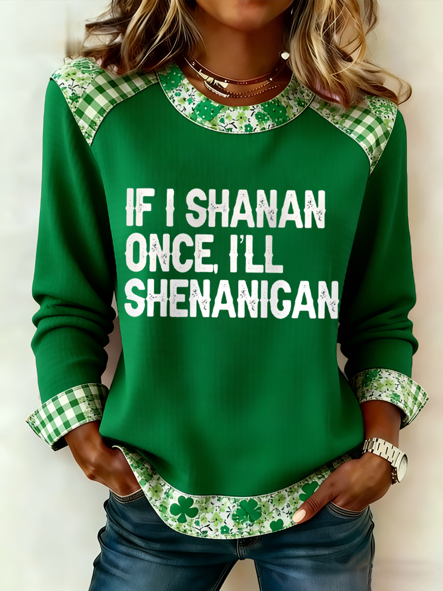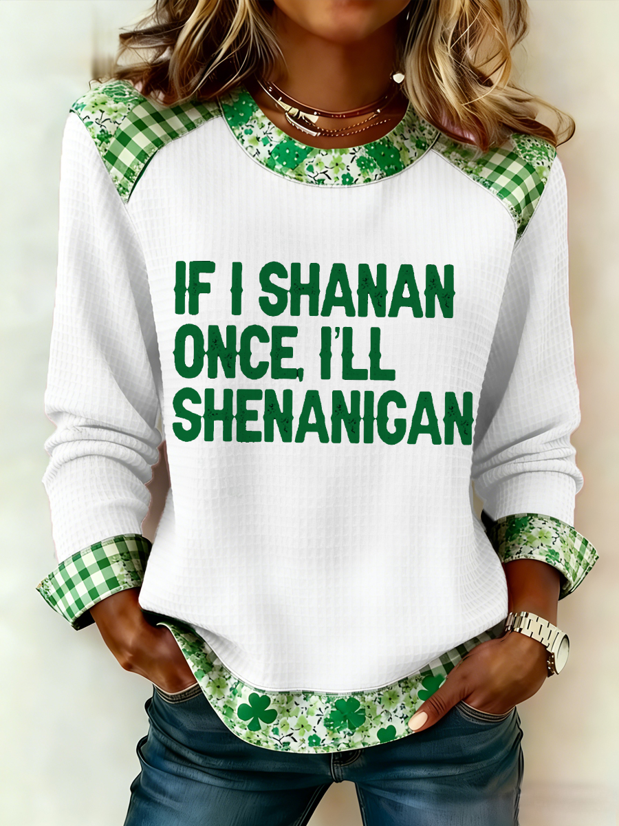 Women's Funny St. Patrick's Day If I Shenan Once, I’ll Shananigen Print Casual Waffle Sweatshirt