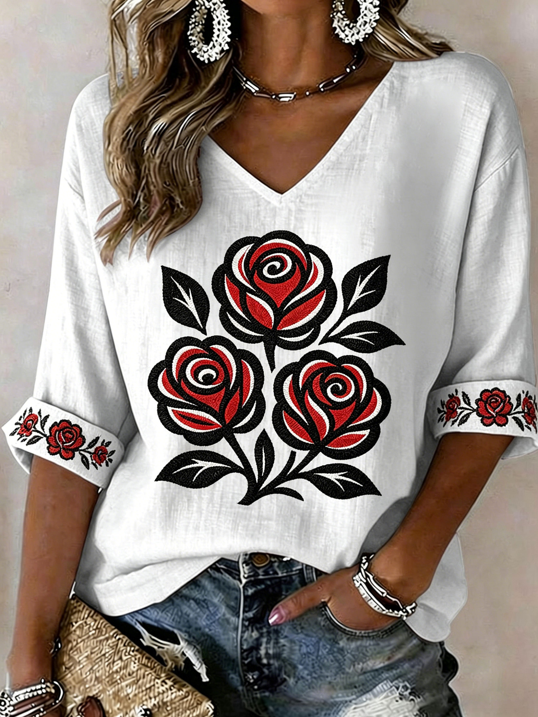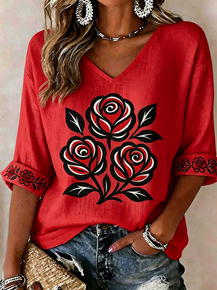 Women's Indigenous Floral Print Casual T-shirt