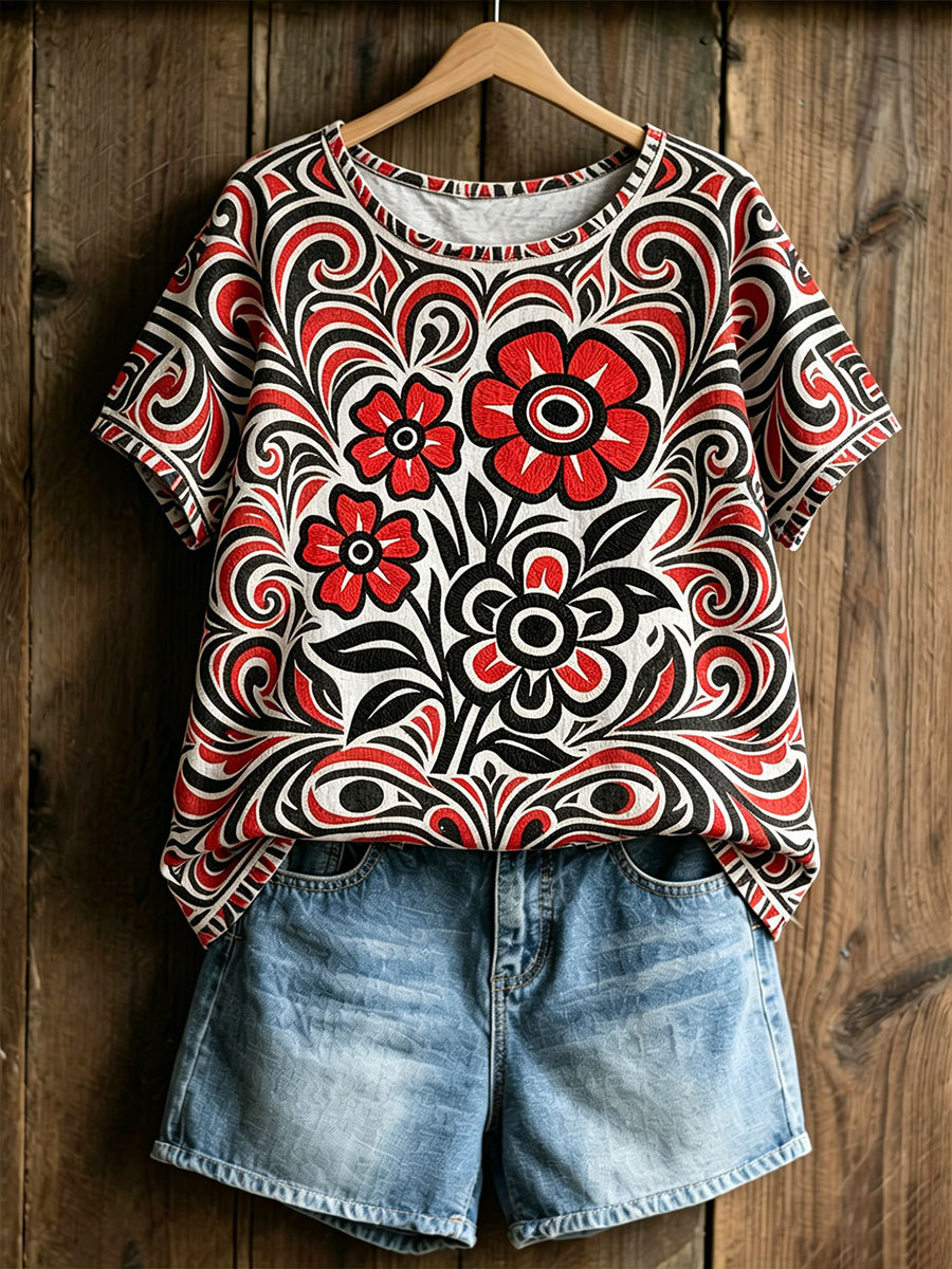Women's Indigenous Floral Print Casual T-shirt