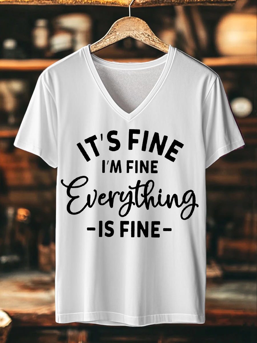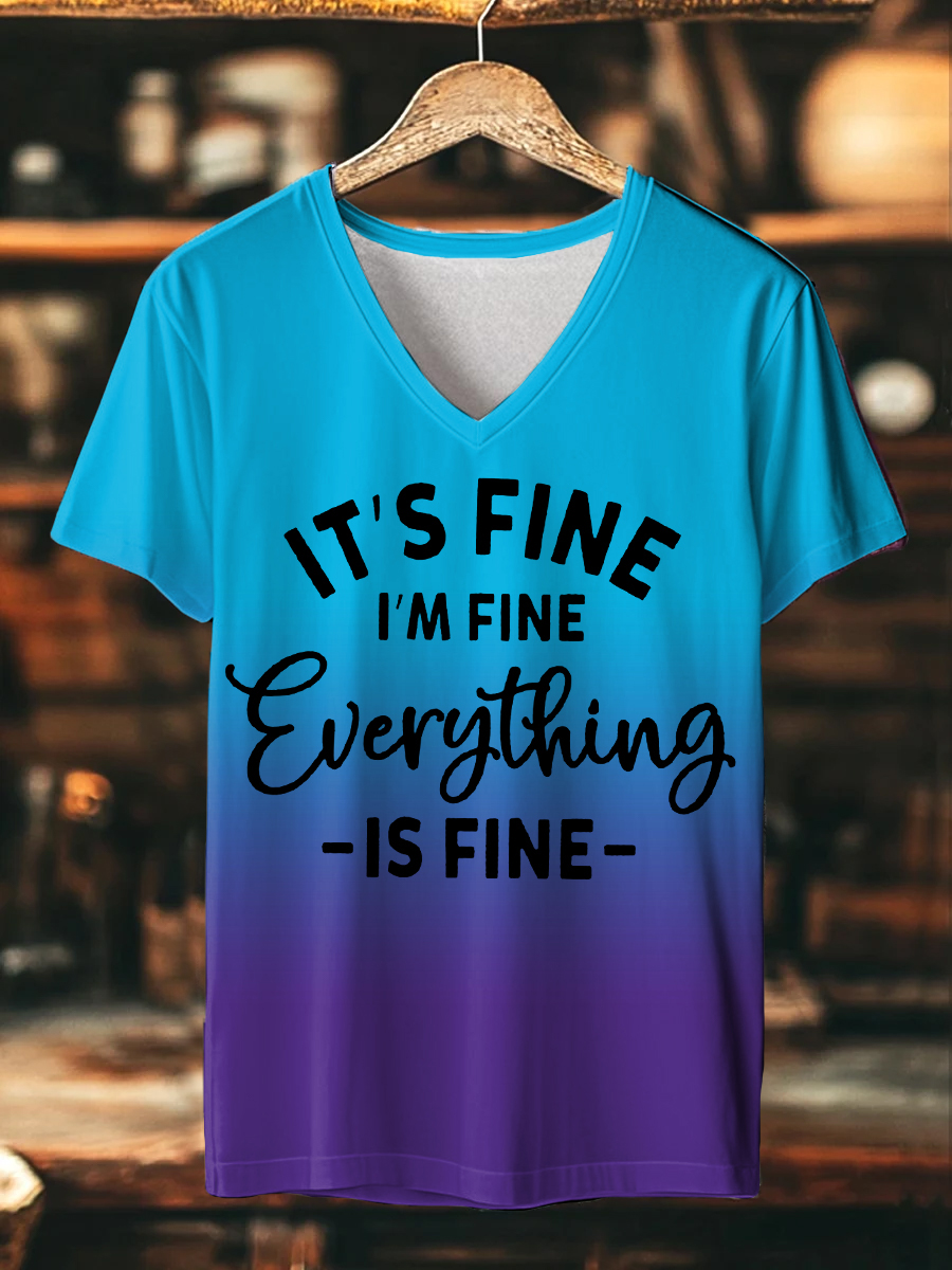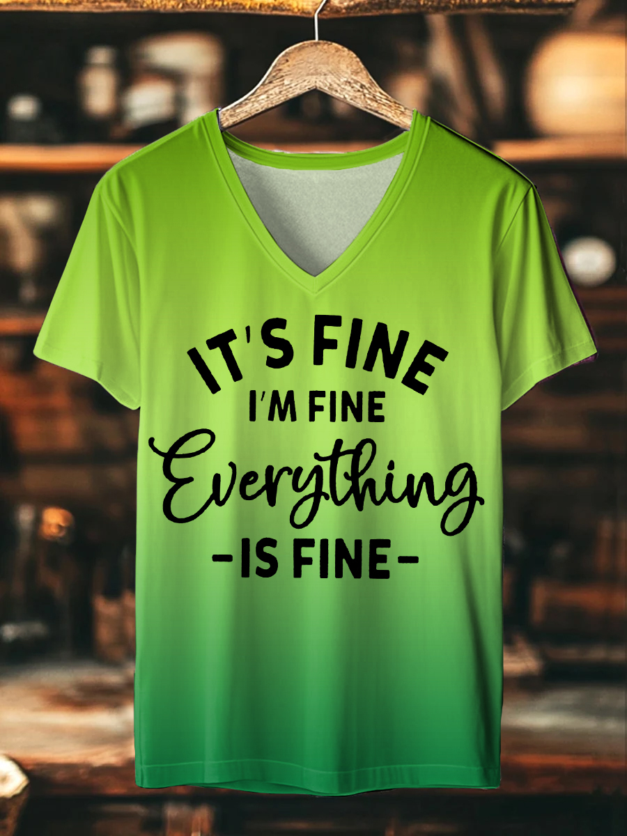 Women's It's Fine I'm Fine Everything is Fine Gradient Print Casual V-Neck Tee