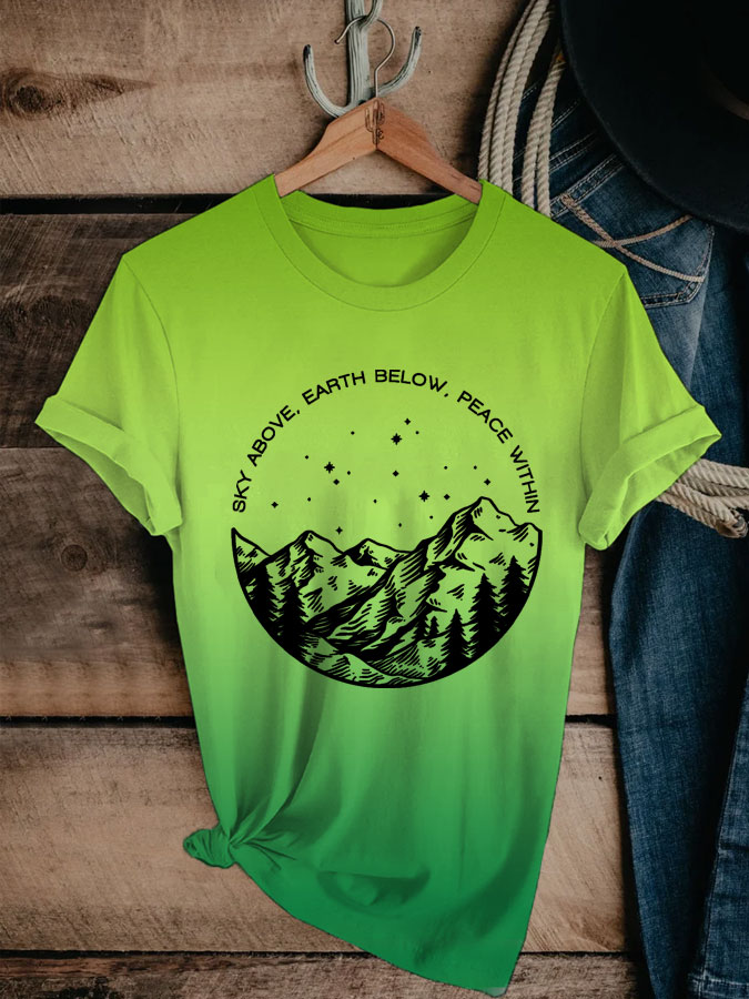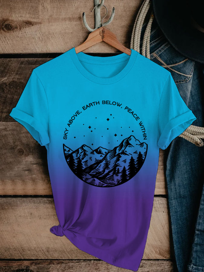 Women's Mental Health Breathe Yoga Sky Above Earth Below Peace Within Printed T-shirt