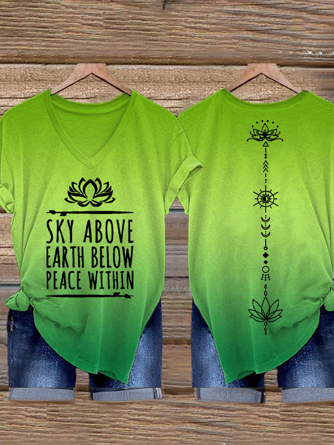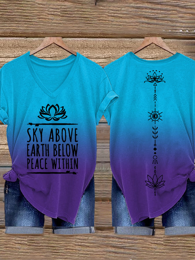 Women's Mental Health Breathe Yoga Sky Above Earth Below Peace Within T-shirt