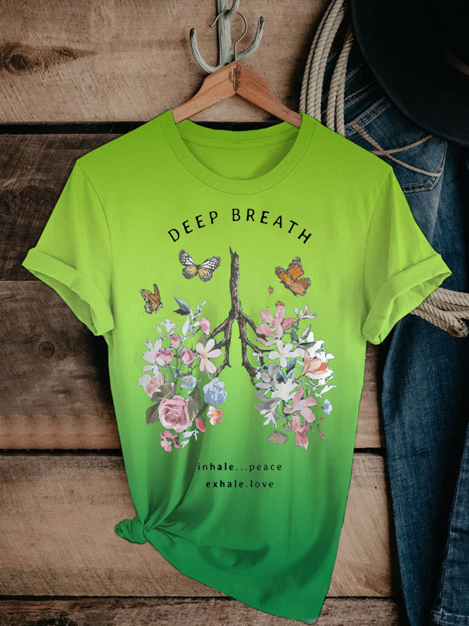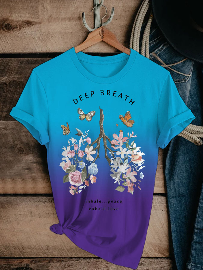 Women's Mental Health Breathe Yoga Symbol Motivational Inspirational Printed T-shirt