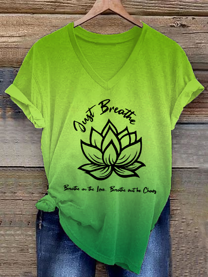 Women's Mental Health Just Breathe Print V-neck T-shirt