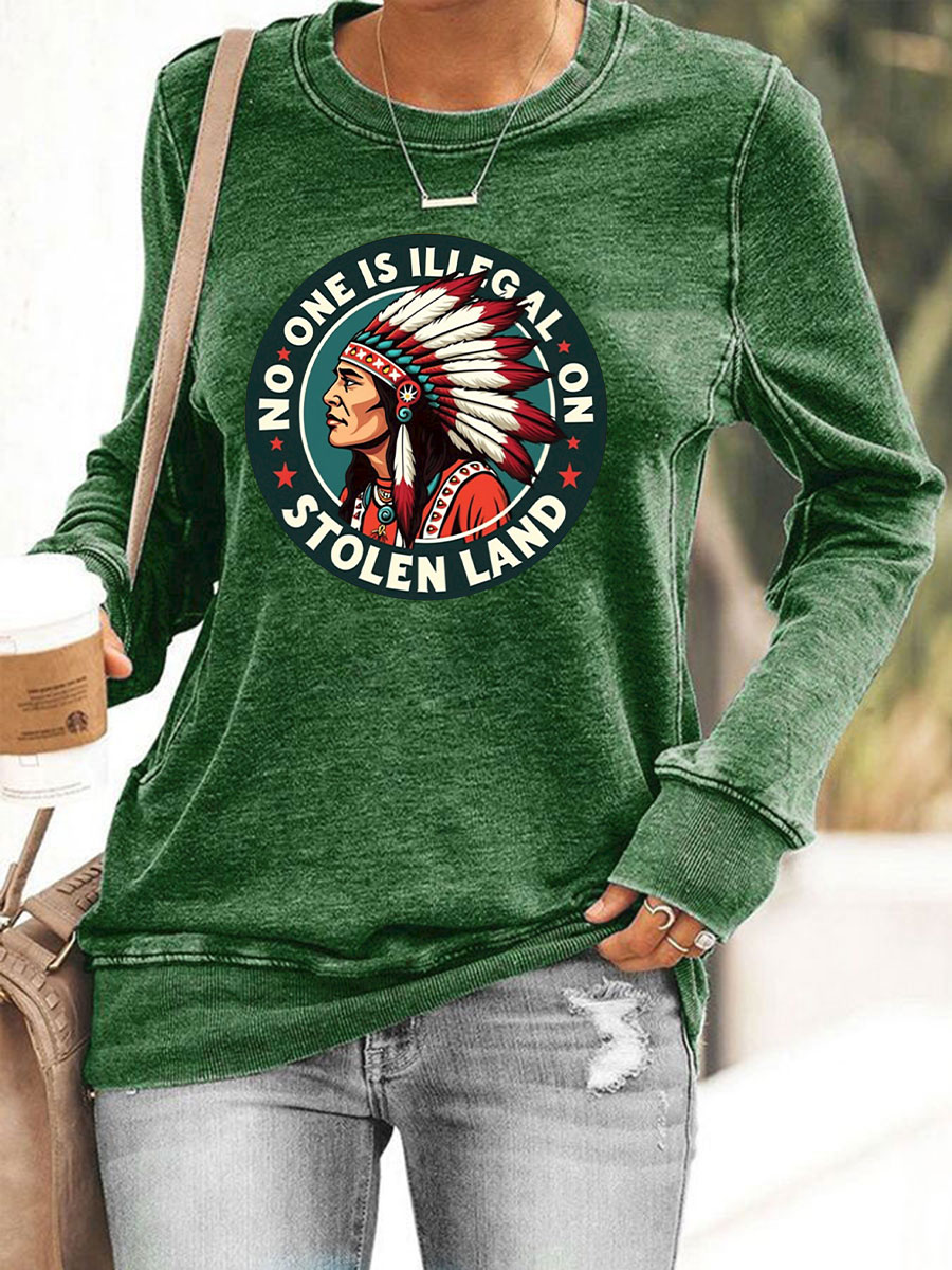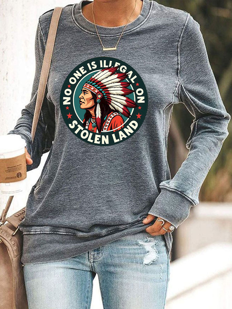 Women's Native American No One Is Illegal on Stolen Land Printed Casual Sweatshirt