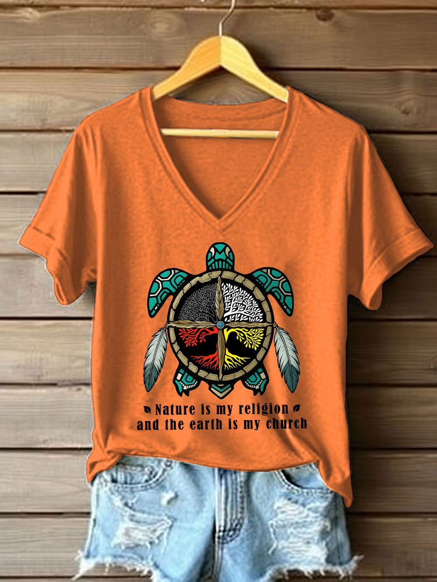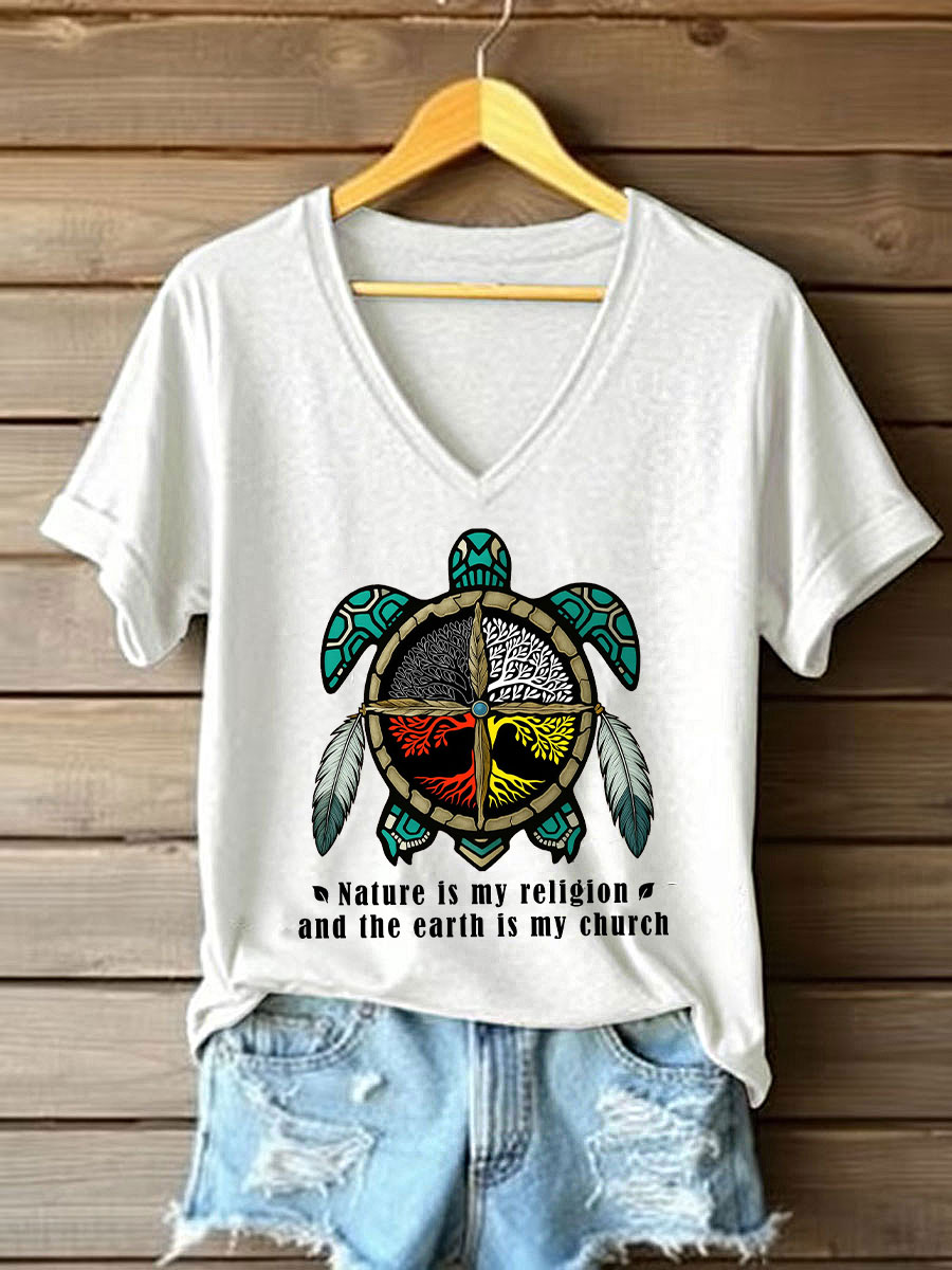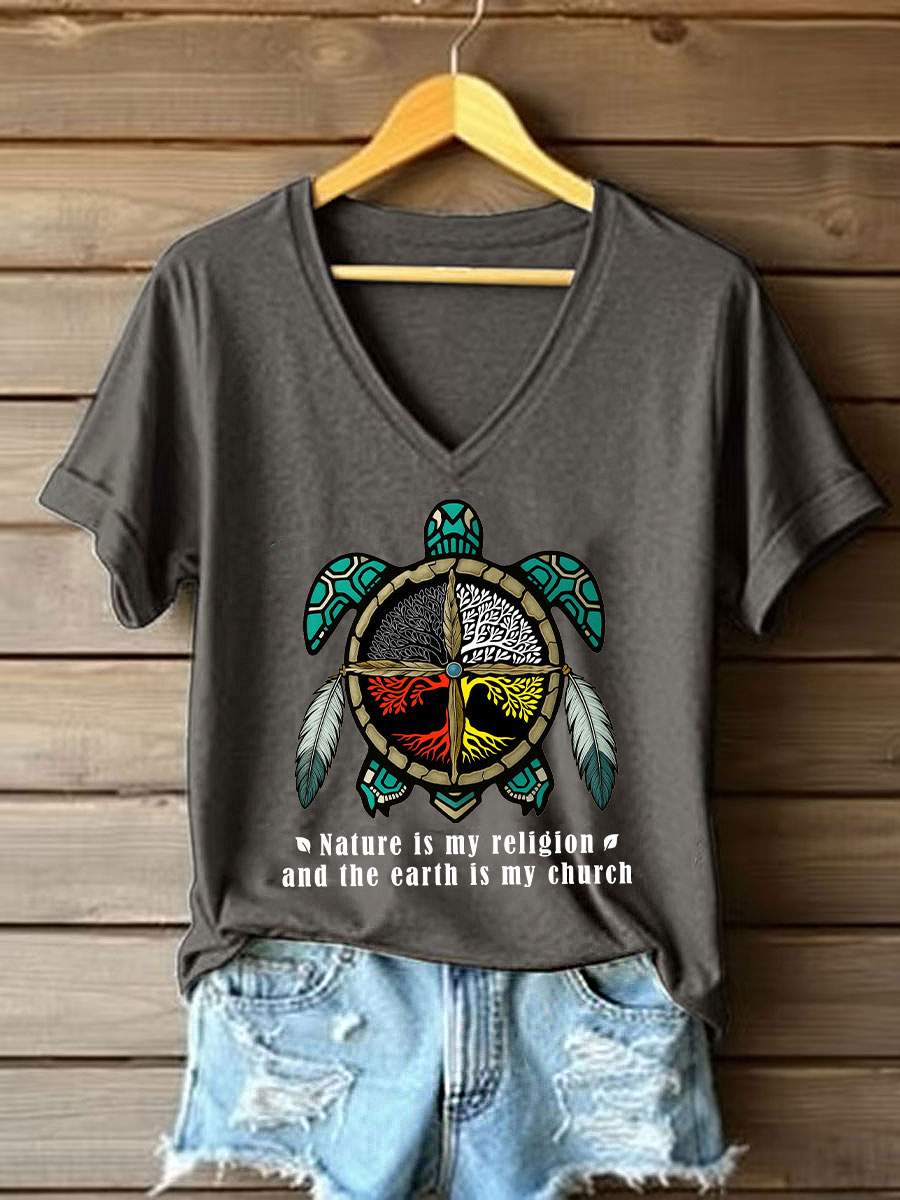 Women's Nature Is My Religion Earth Is My Church Printed Casual T-Shirt
