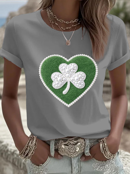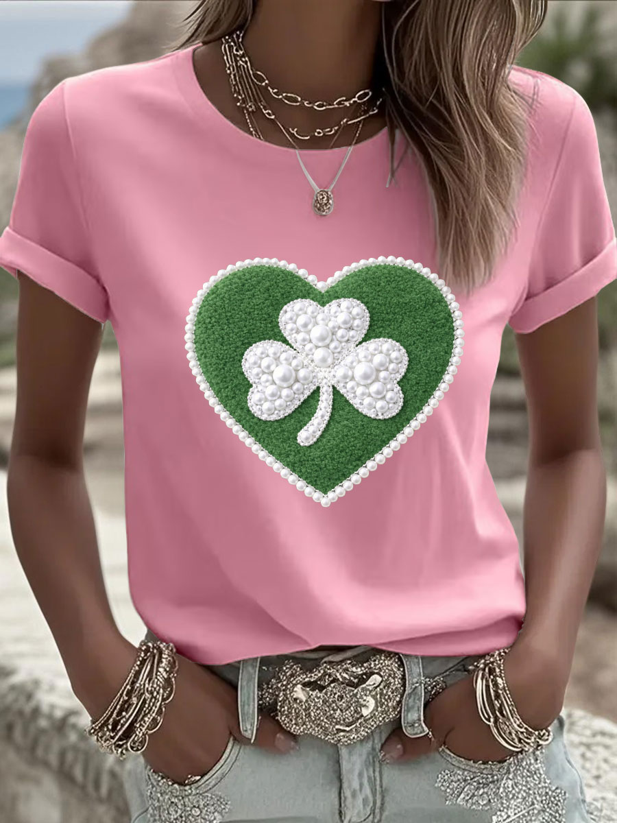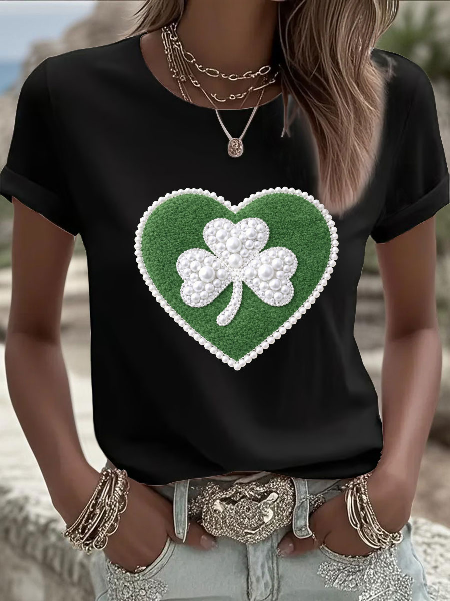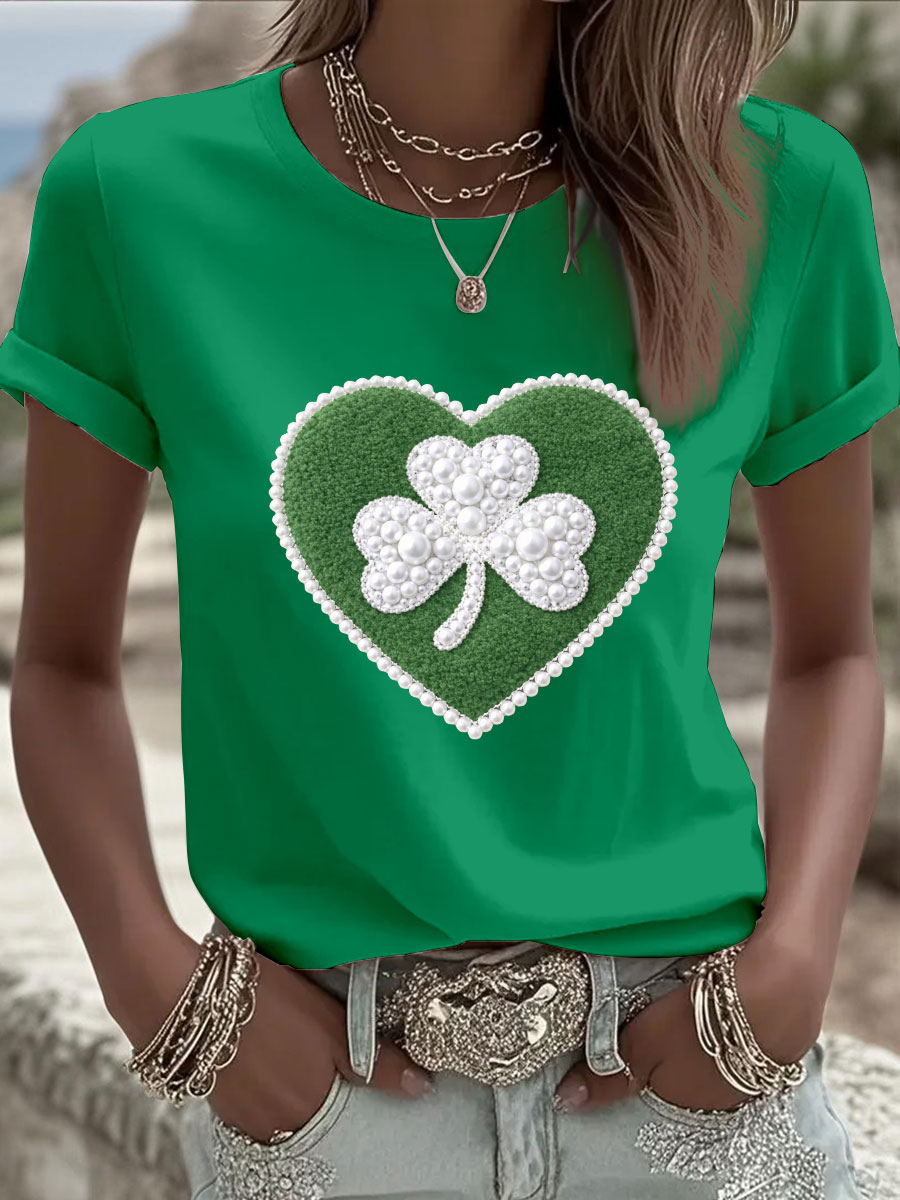 Women's St. Patrick's Day Pearl Shamrock Print Casual T-Shirt