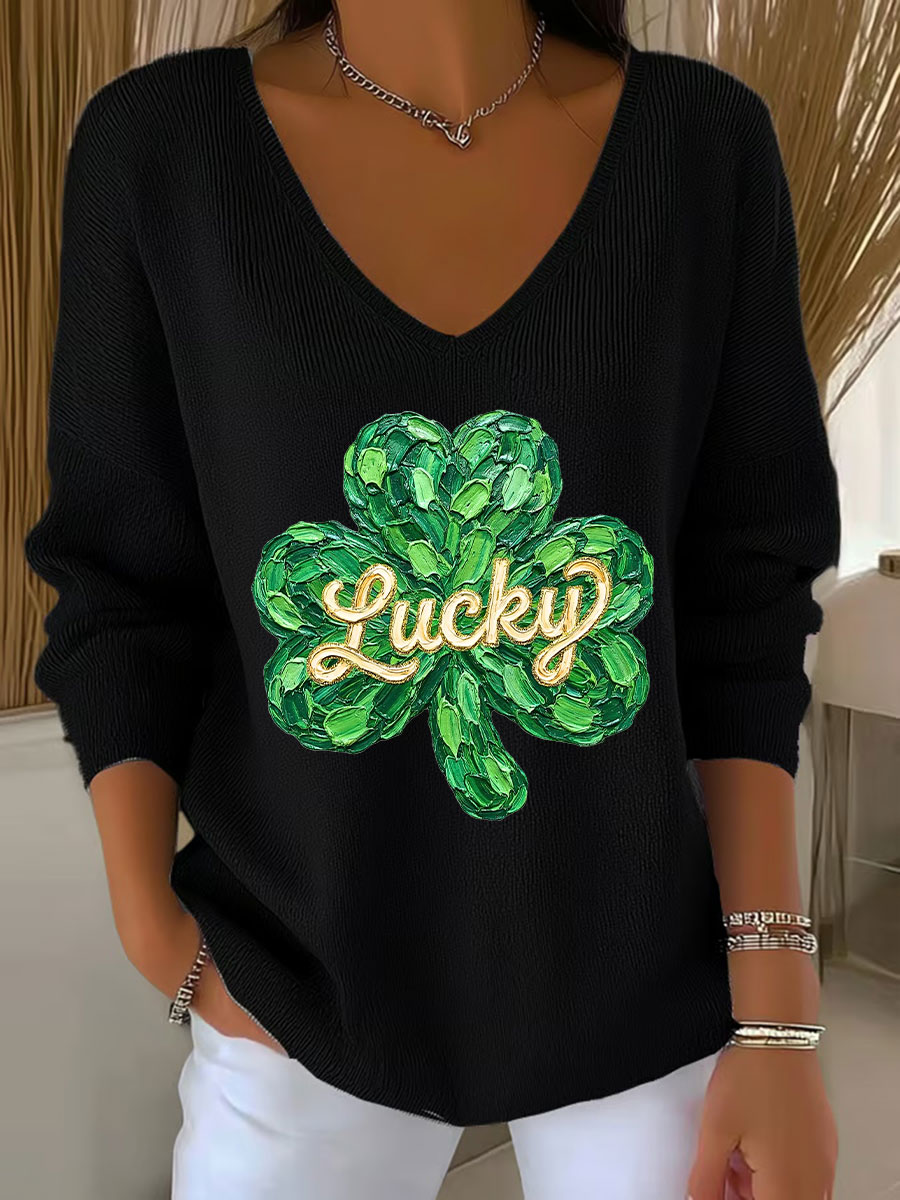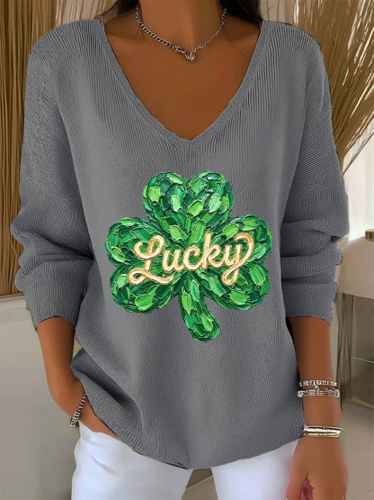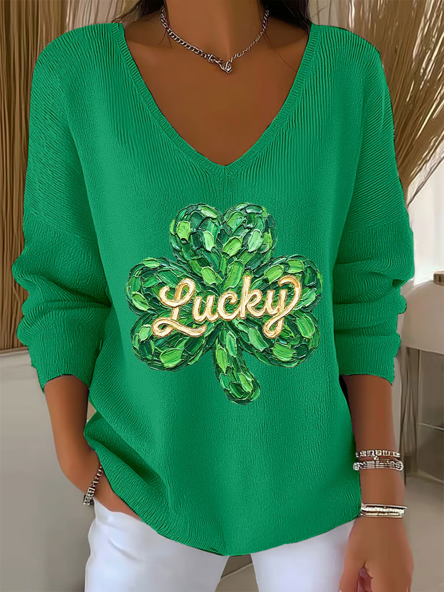 Women's St. Patrick's Day Print Casual V-Neck Top