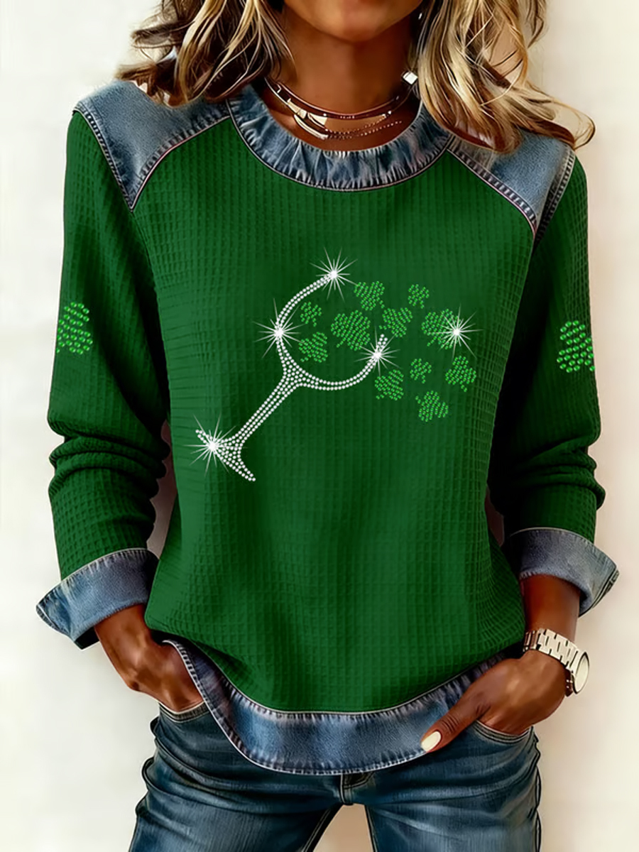Women's St. Patrick's Day Print Waffle Sweatshirt