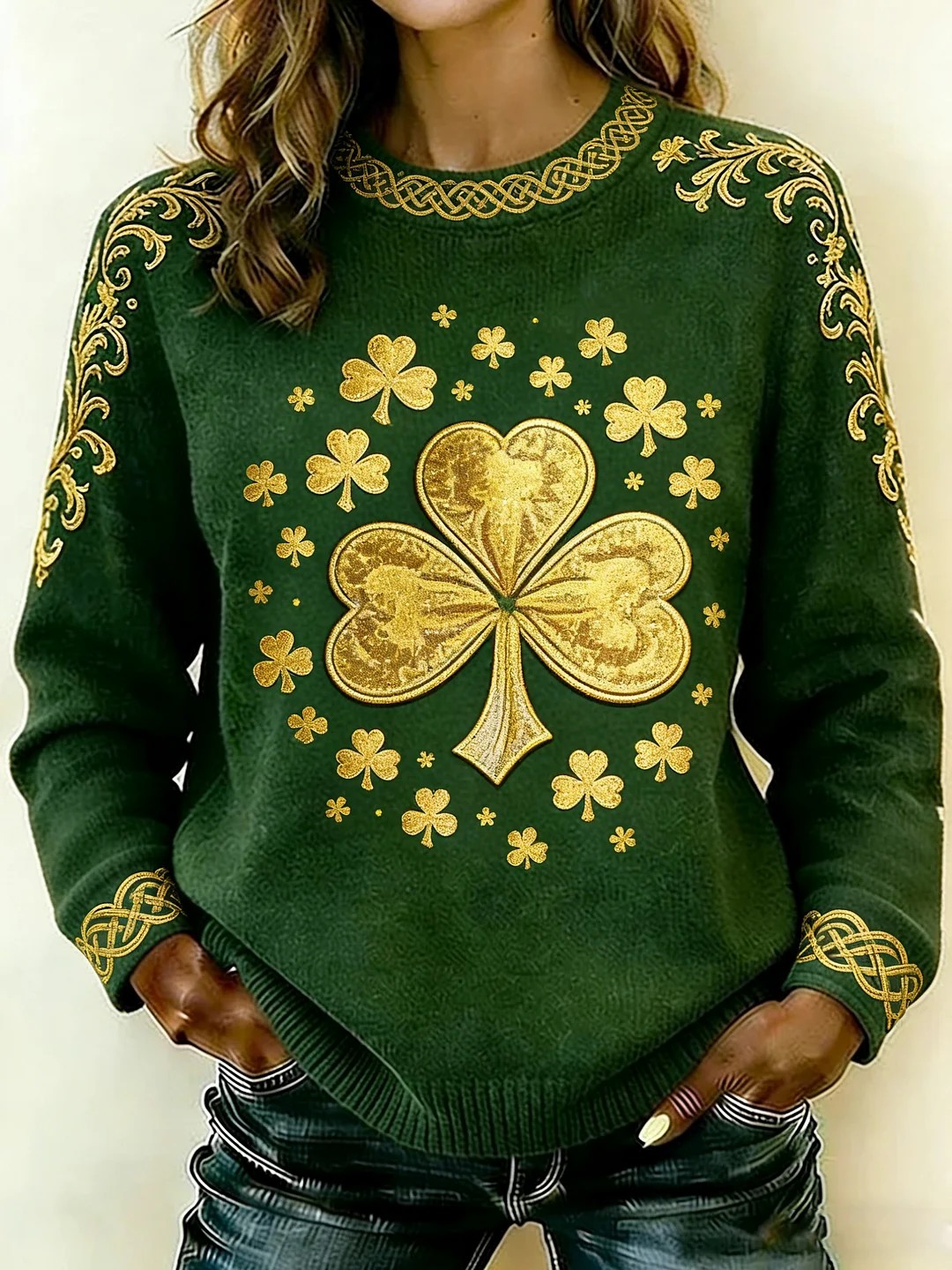 Women's St. Patrick's Day Printed Crew Neck Sweater